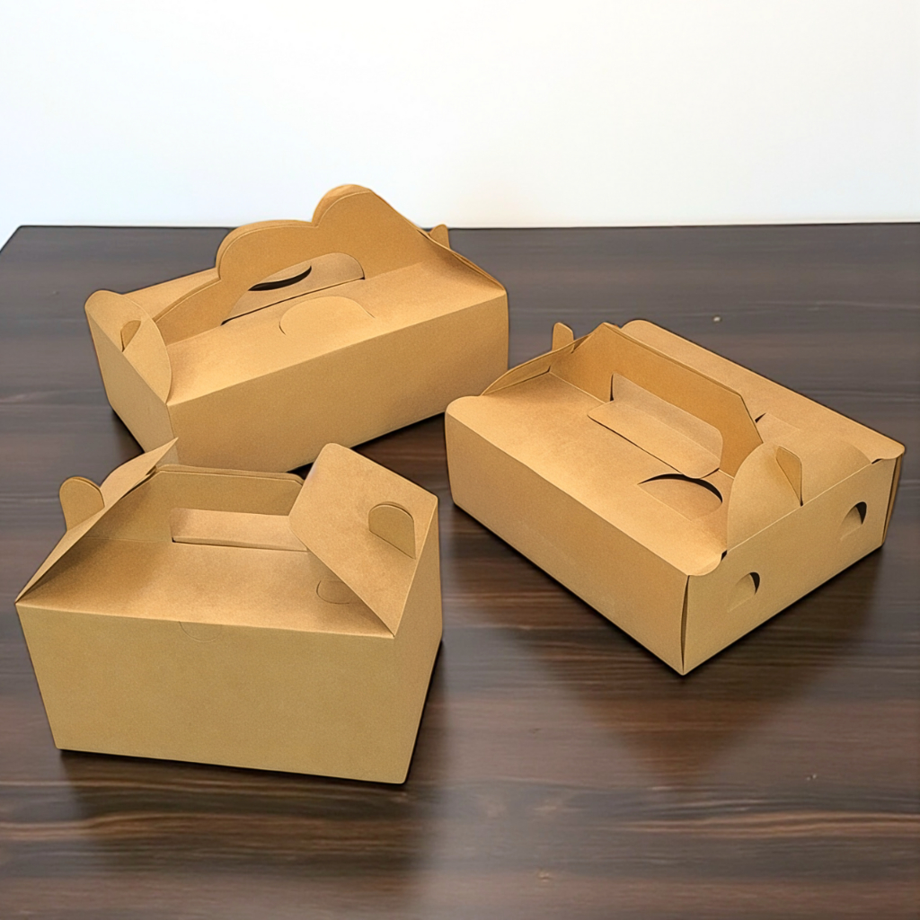 10pcs Chicken Box Medium Size with Handle Plain Kraft & Plain White Pastry Box Donut Food Box