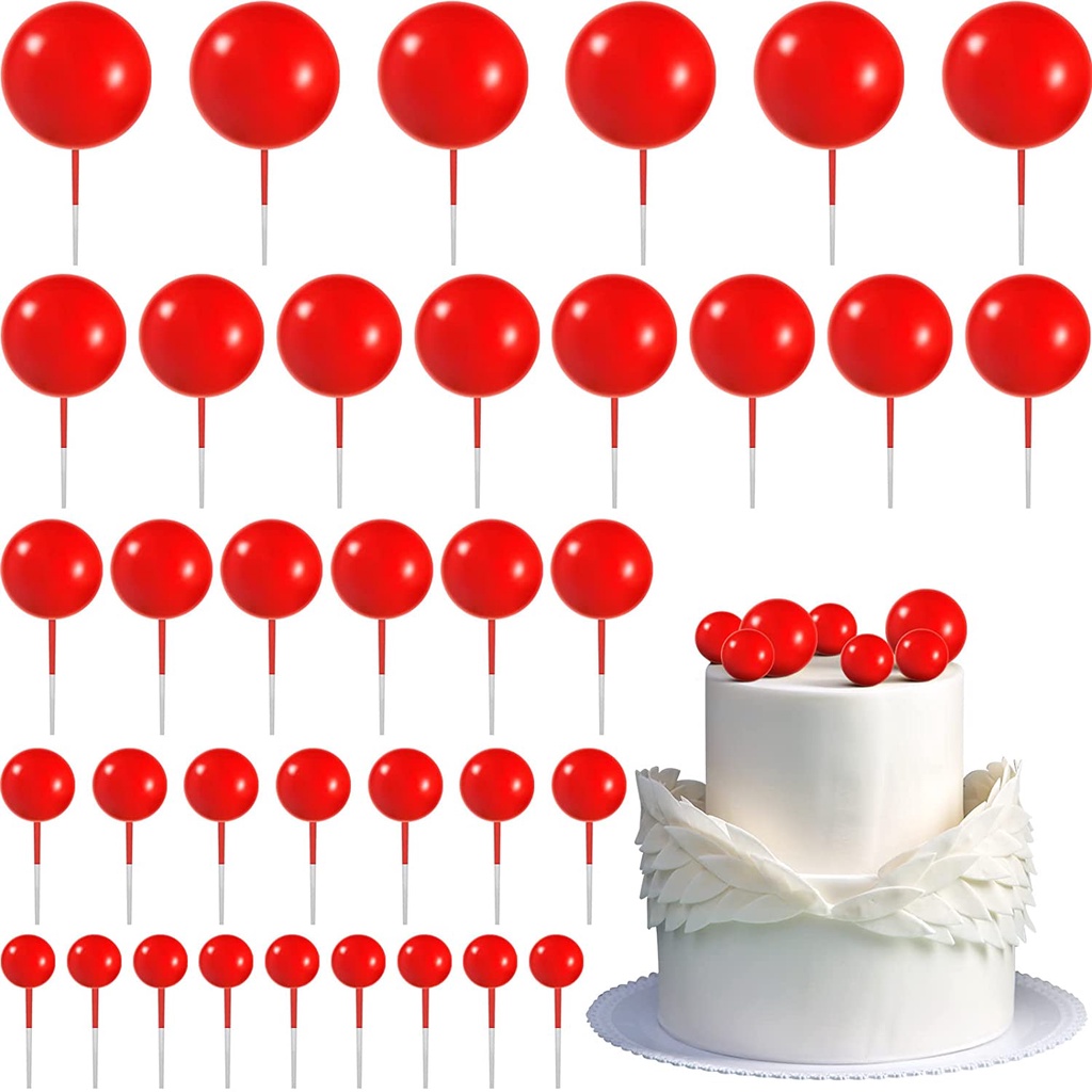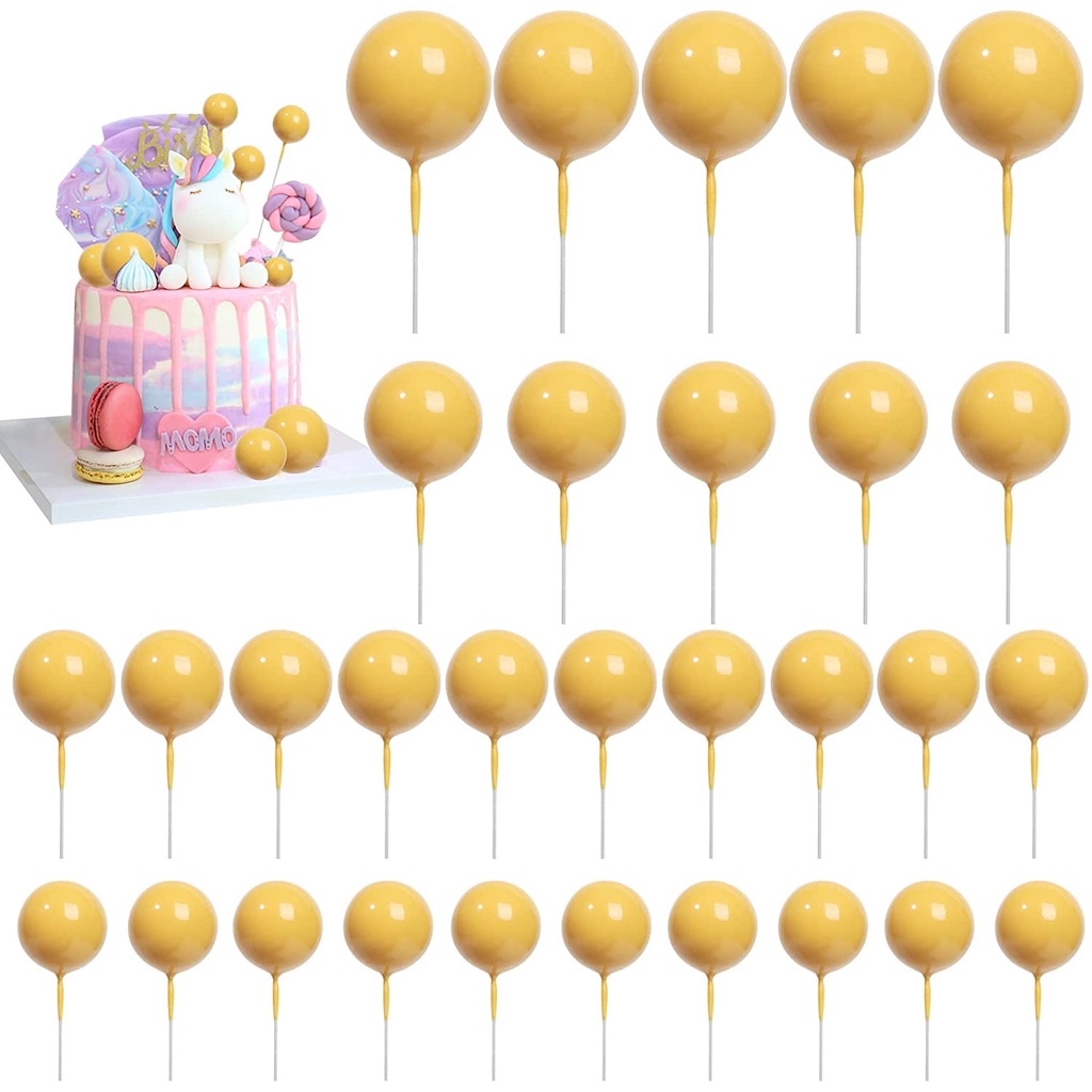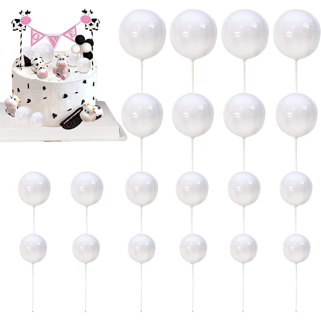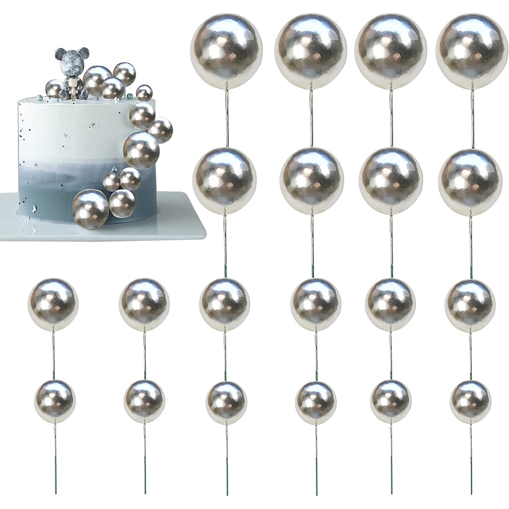 10pcs Colorful Pearl Balls Cake Topper Foam Ball Cupcake Insert Topper Set Wedding Anniversary Graduation Birthday Party Cake Decoration
