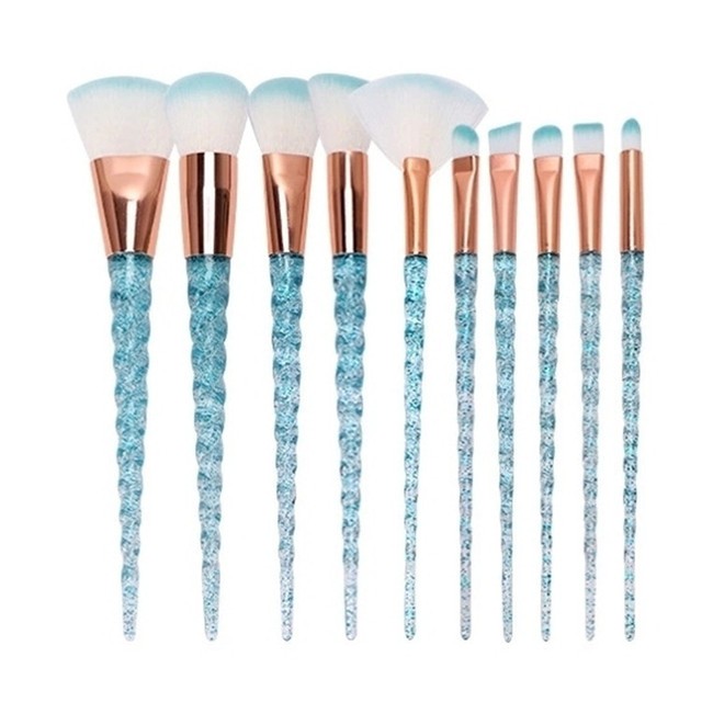 10pcs Diamond Makeup Brushes Set Crystal Powder Blush Foundation Eyeshadow Unicorn Make Up Kits Blending Brush