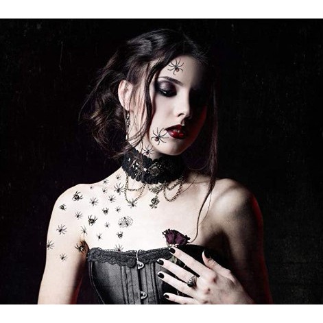 10pcs Halloween Spider Tattoo Stickers 3D Scary Spider Web Stickers Temporary Animal Tattoos