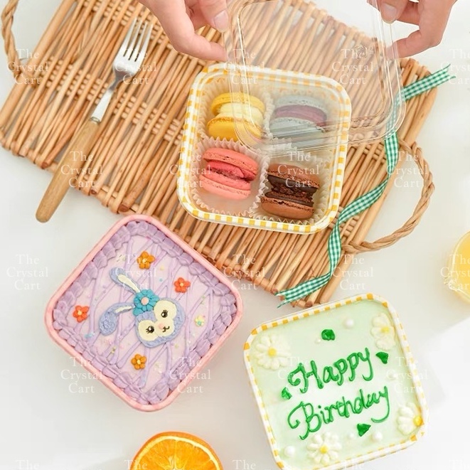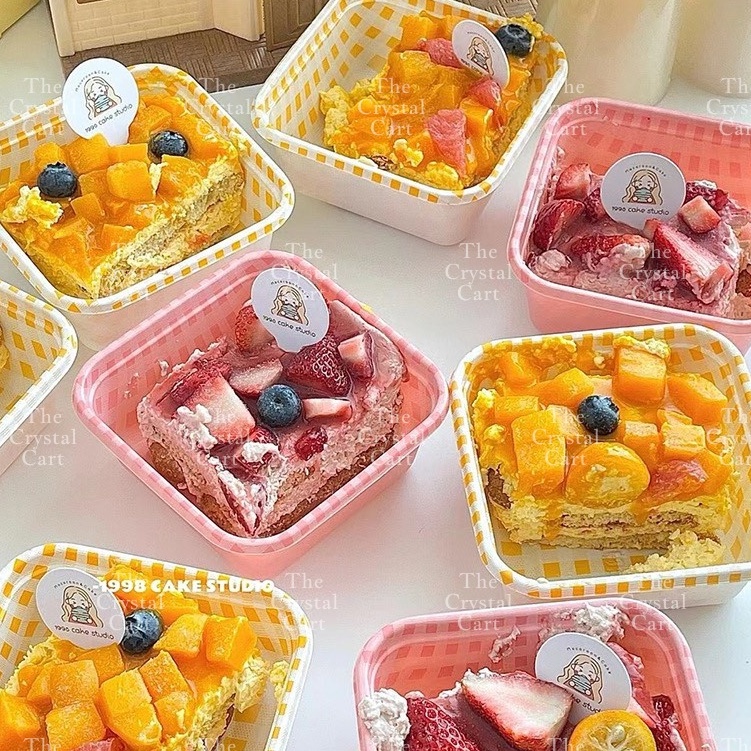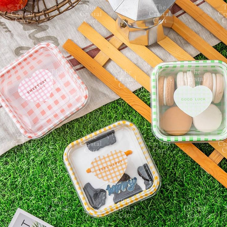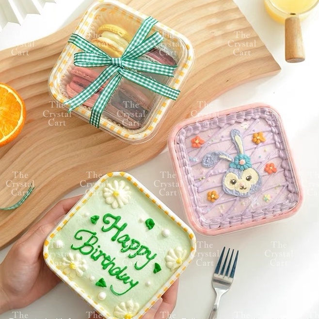 10pcs Korean Retro Checkered Square Rectangle Cake Box /Cute Bento Box Aesthetic Bento Box TCC