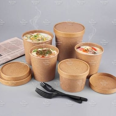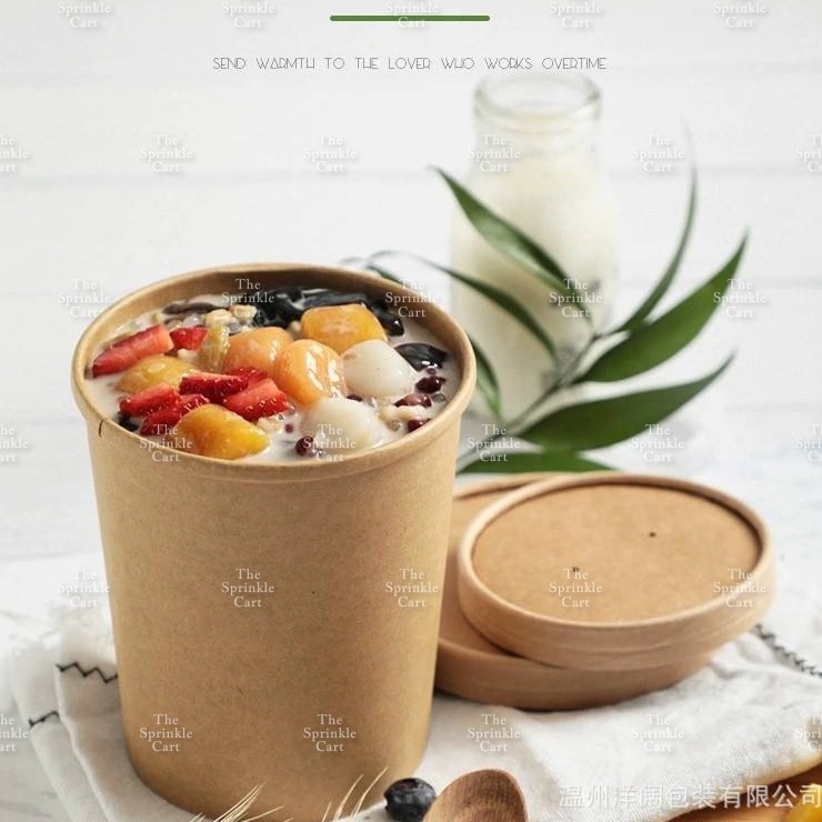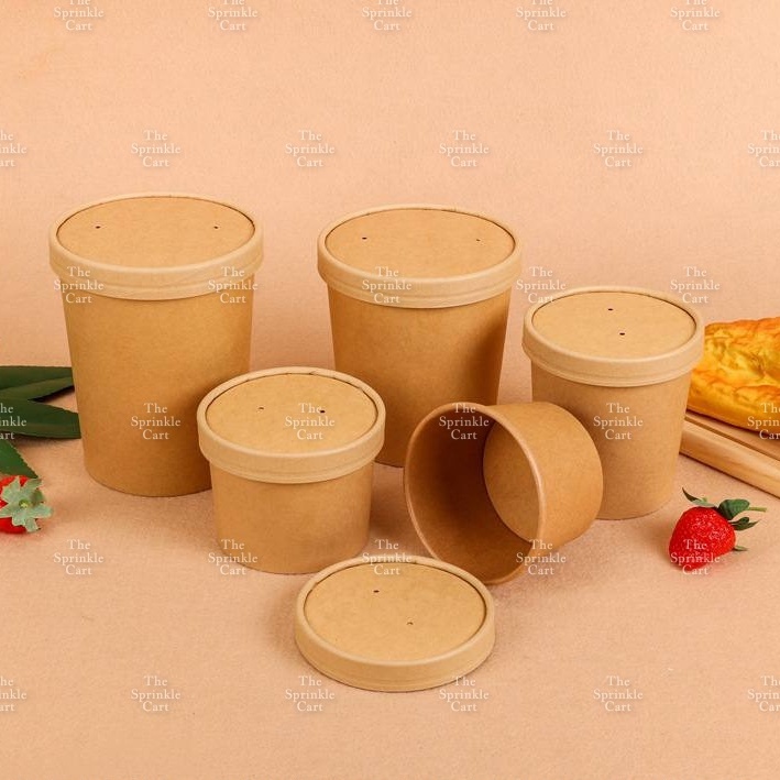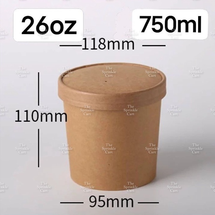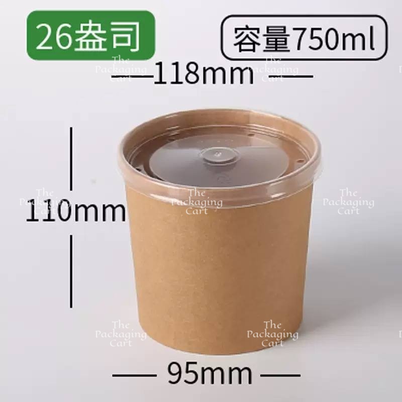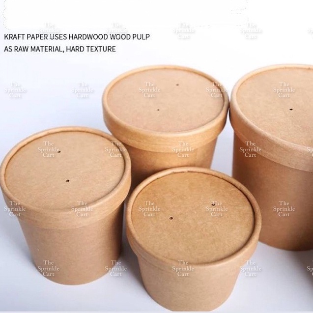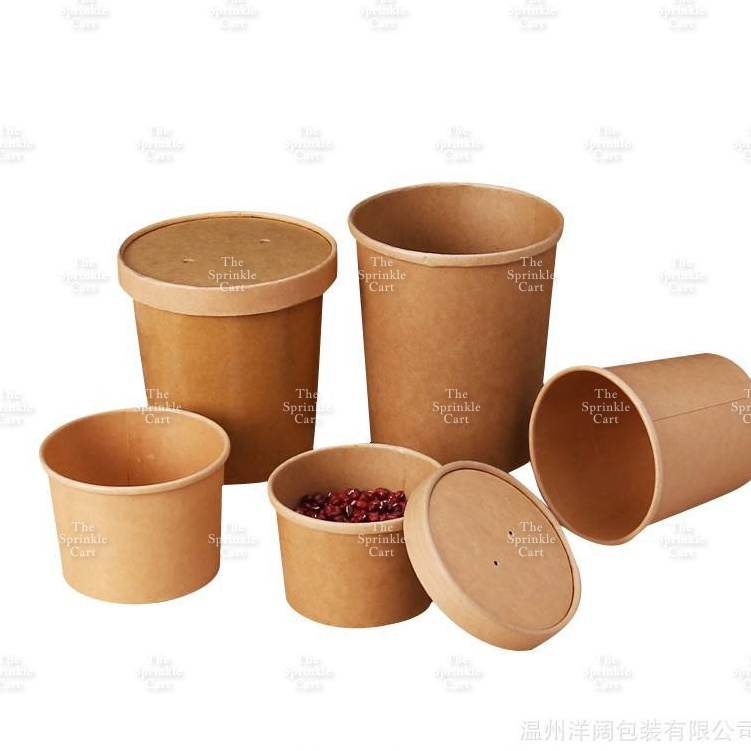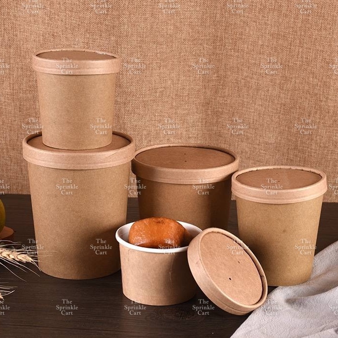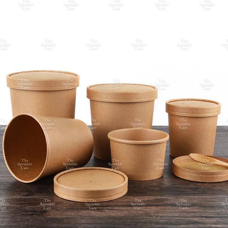 10pcs Kraft Paper Tub/Cup with Lid Ice Cream Tub Soup Bowl 26oz/16oz/12oz/8oz TPC