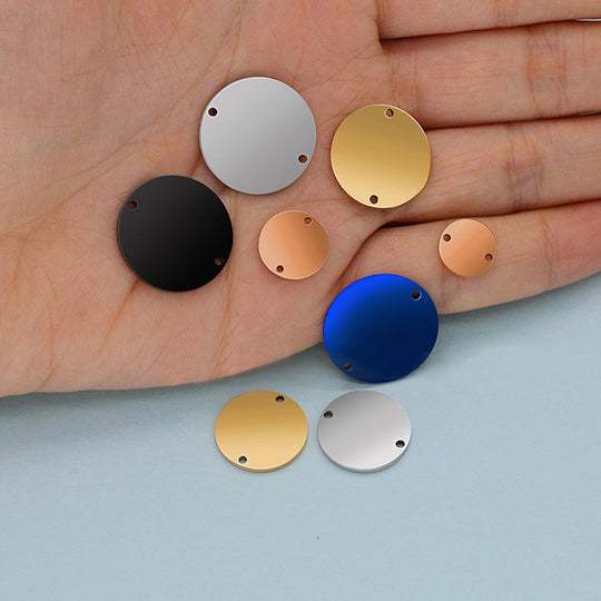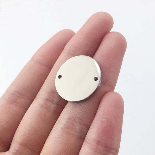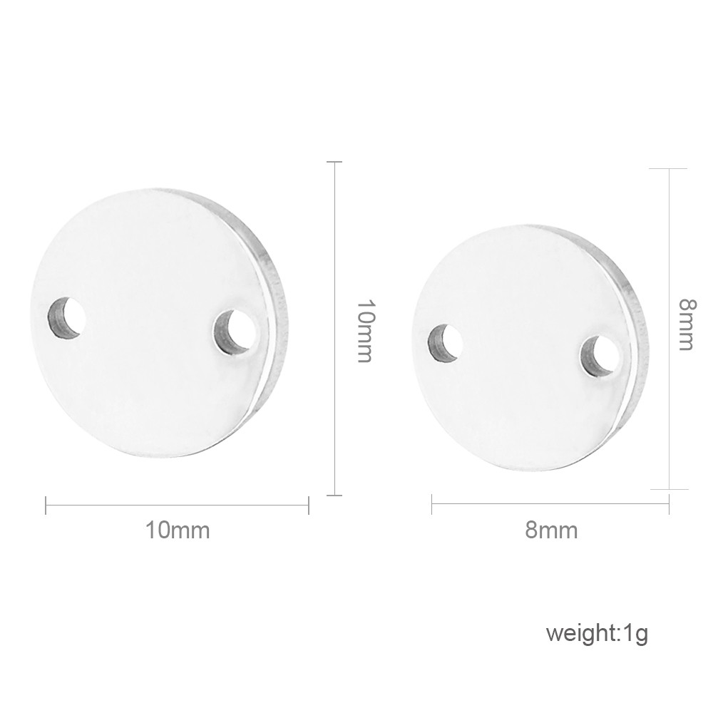 10pcs/Lot 8mm-25mm Non Tarnish Double Holes Round Pendant Two Holes Mirror Polished Disc 2 Holes Metal Plate Customized Circle Tag Bracelet Connector Stainless Steel Jewelry Accessories