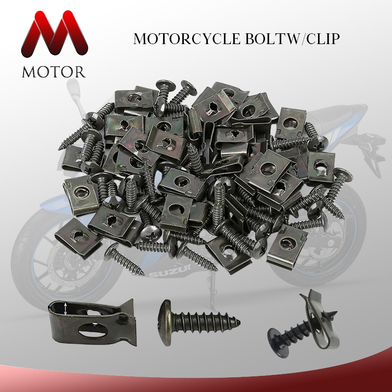 10pcs Metal U-Type Clips Screw Set Car Bumper fender Fasteners Base Self-tapping Screw Buckles Clip