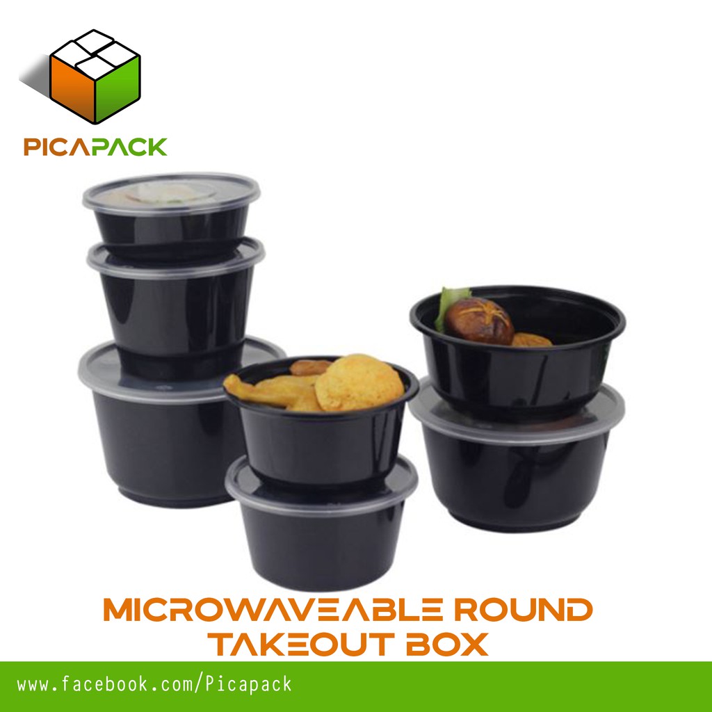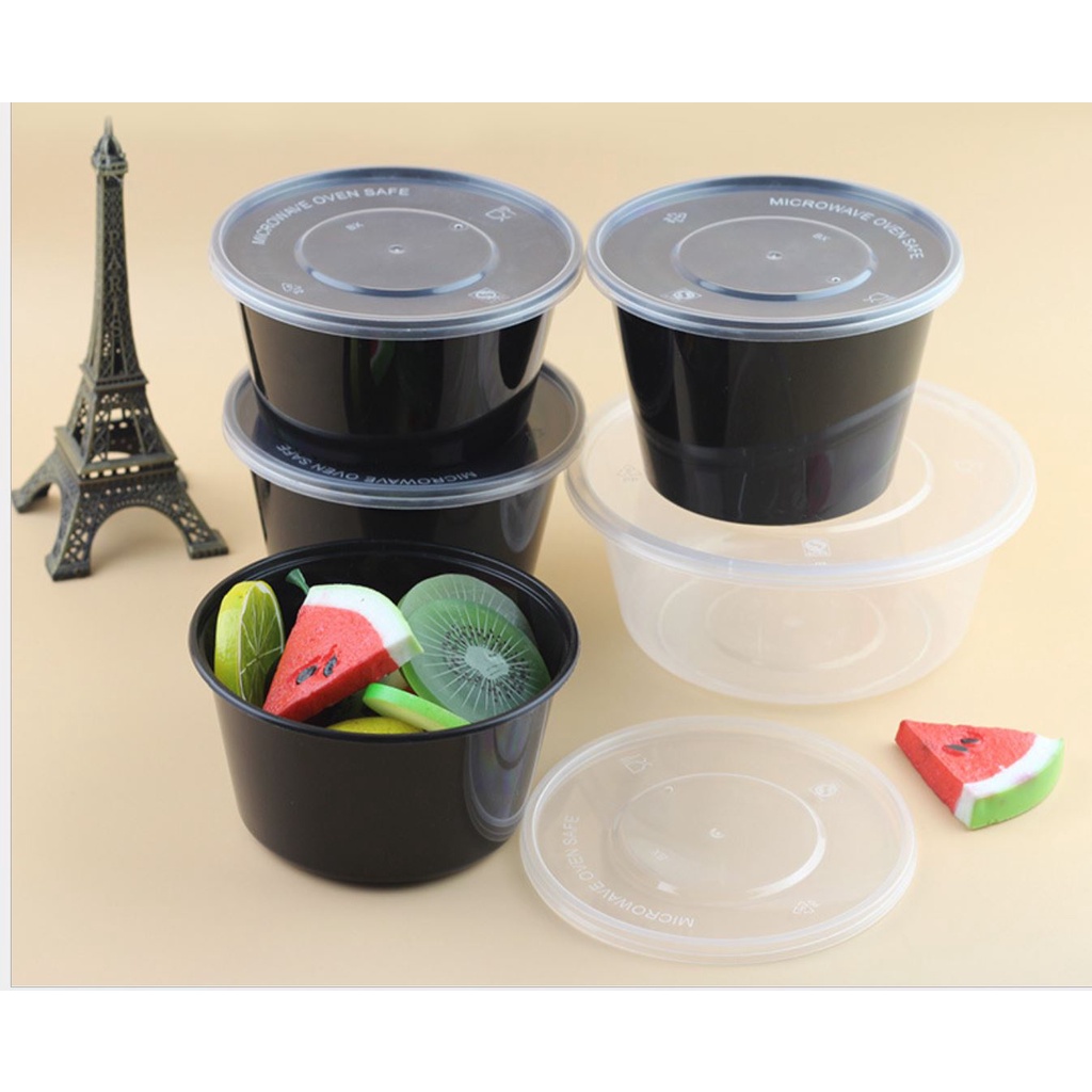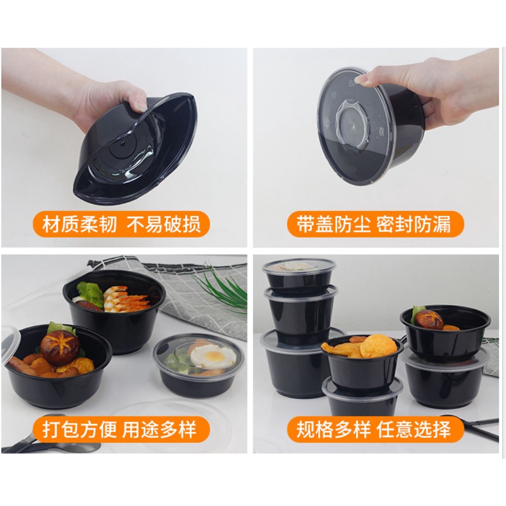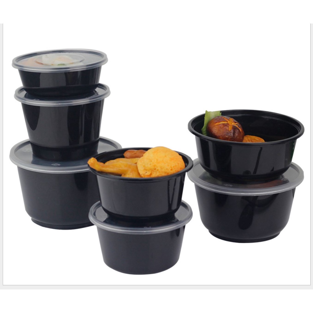 10pcs Microwaveable Black / Clear Round Food Box Takeaway Containers Food Storage Microwavable