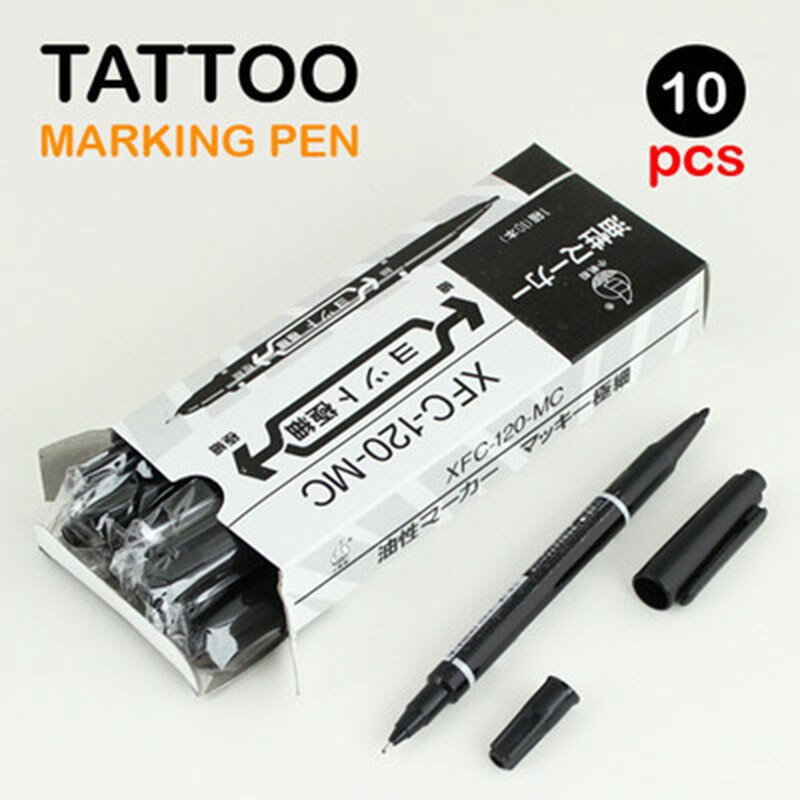 10pcs Newest Dual-Tip Black Tattoo Skin Marker Piercing Marking Pen Tattoo Supply For Permanent Makeup