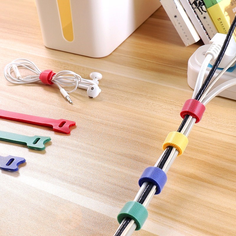10pcs Nylon Reusable Cord Organizer, Velcro Cable Organizer, T-type Adhesive Velcro Strap Tape, Computer Data Cable Power Cable Tie Straps Home Living