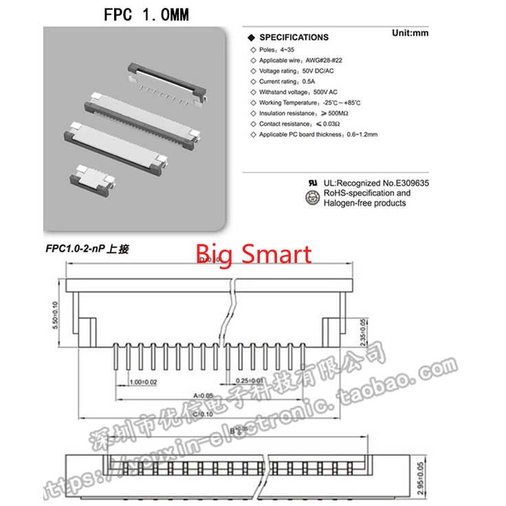 10pcs Pitch 1.0mm fpc connector Under Clamshell Socket FPC FFC Flat Cable Connector 4P 5P 8P 10P 12P 16P 20P 24P 30P-40P Pitch 1mm