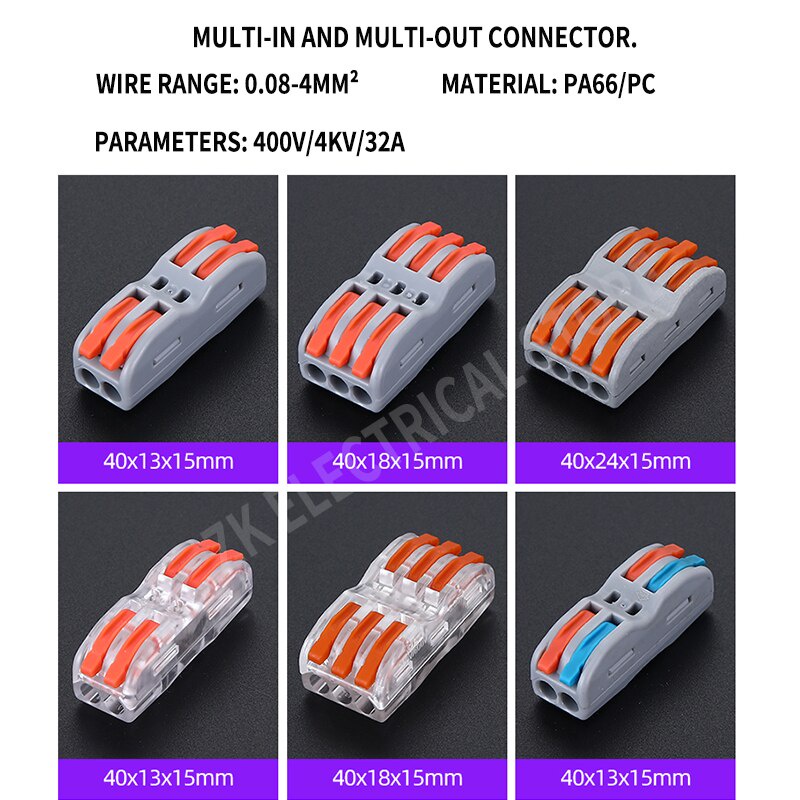 10pcs Quick connect terminal push type butt joint column combiner one two three1234 in one two three four 1234out wire connector