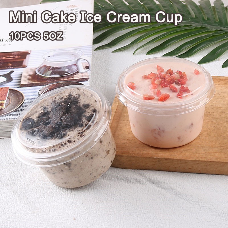 10pcs Round Clear Dessert Plastic Container With Lid Mousse Mini Cake Ice Cream Disposable Cup Party
