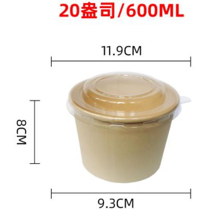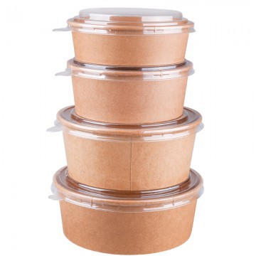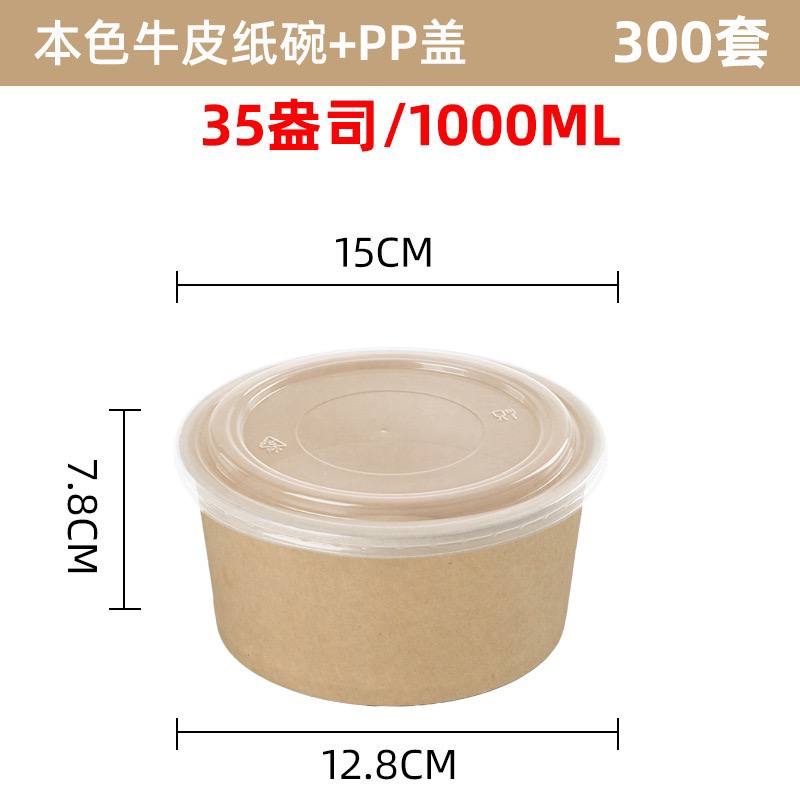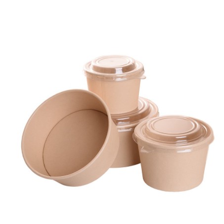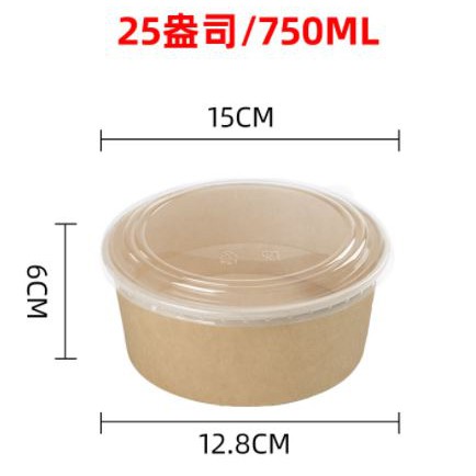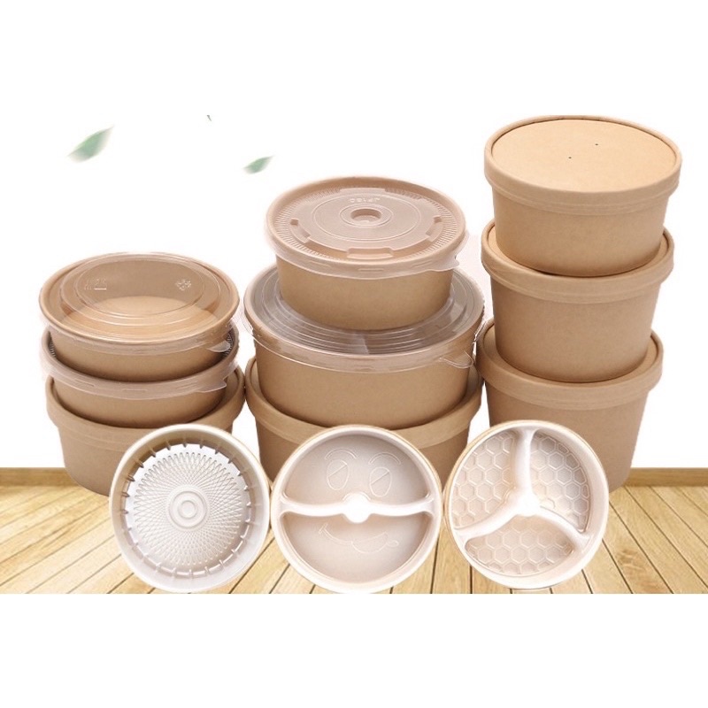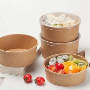 10pcs Round Disposable PE Coated Kraft Take Out Bowl with Lid for salad Bowl
