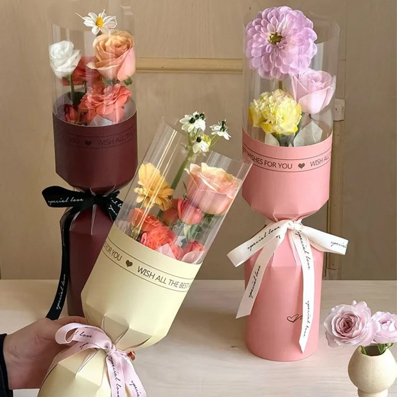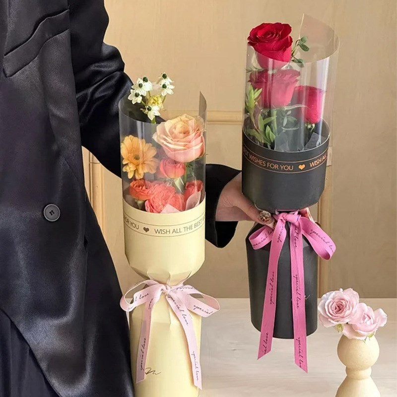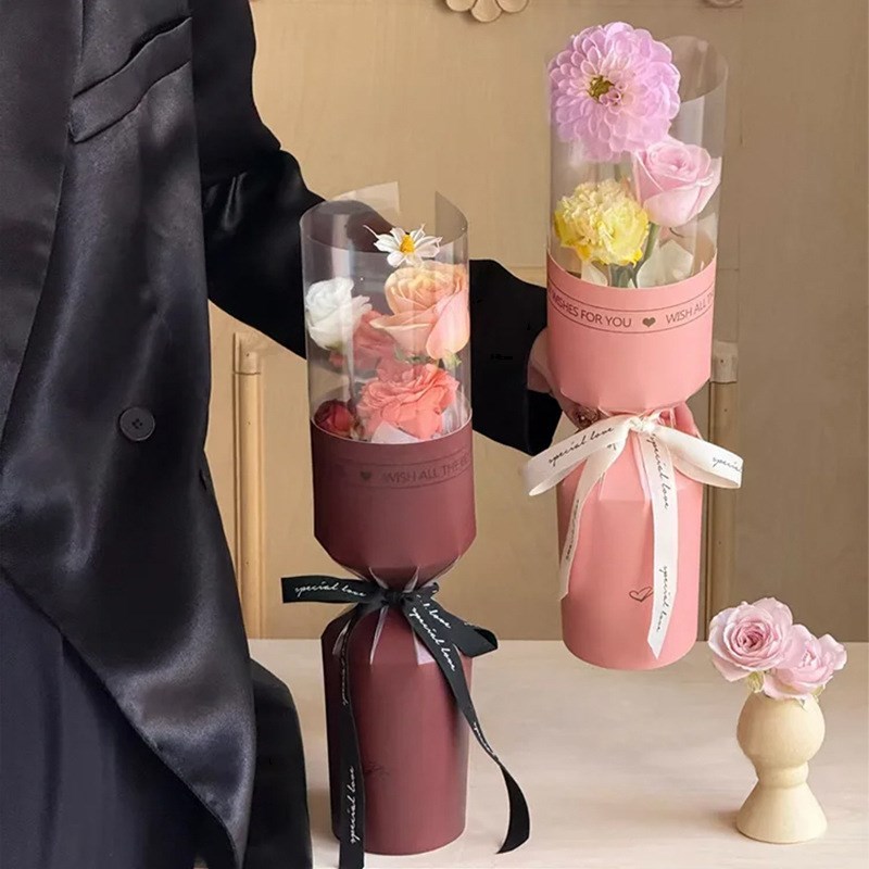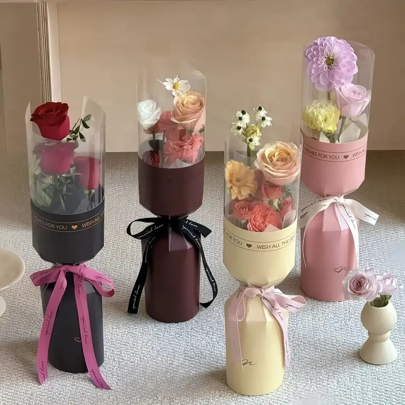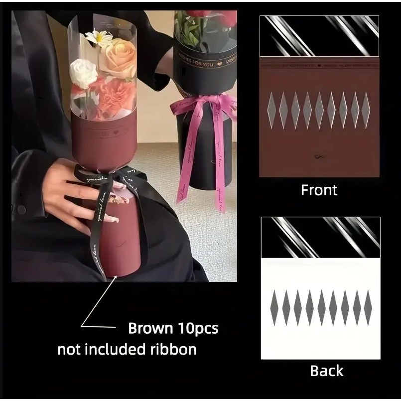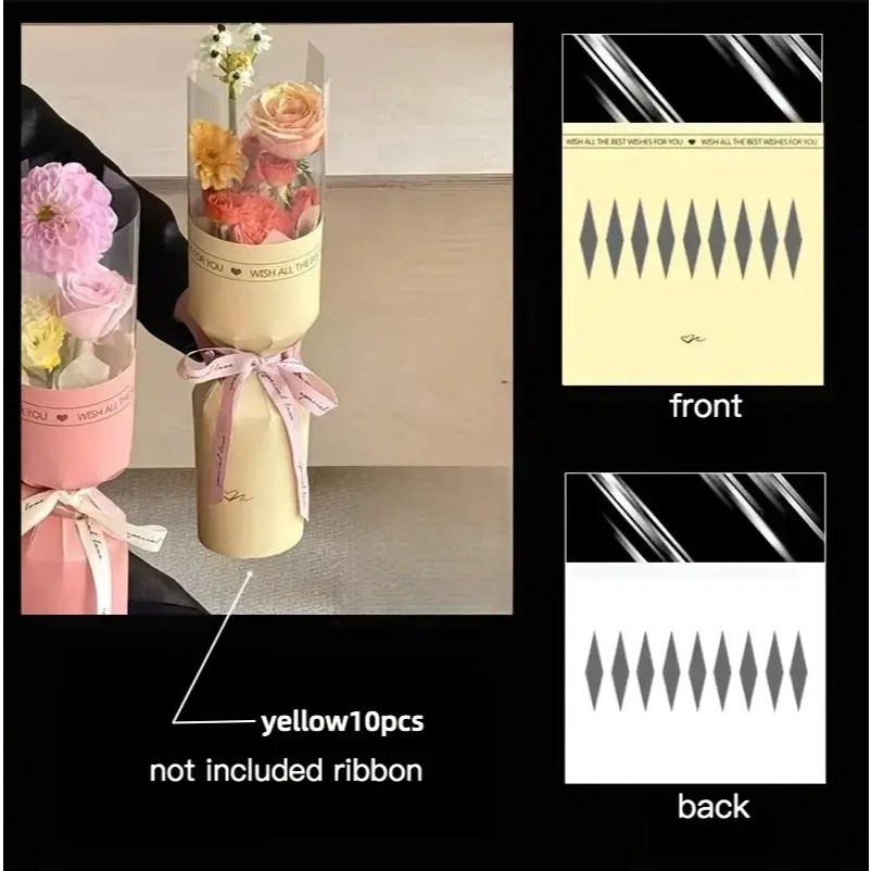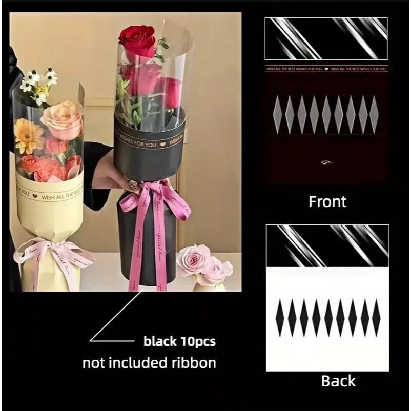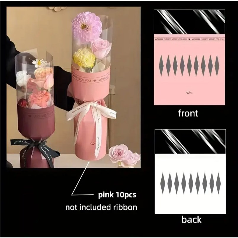 10pcs Round Flower Wrapping Paper in Clear Plastic Ideal for Valentine'S Day, Women'S Day, Anniv etc