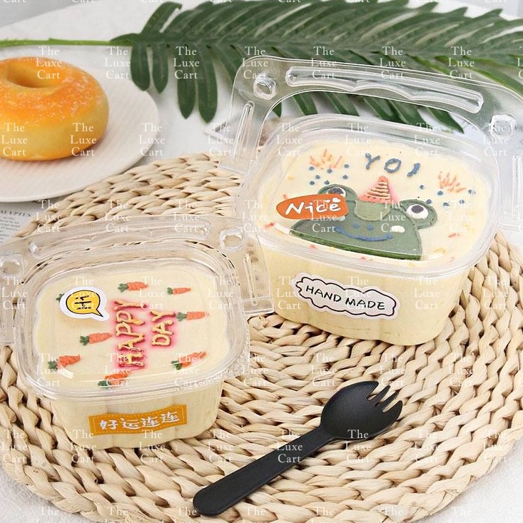 10pcs Square Packaging Transparent w/Handle Dessert Plastic MousseYogurt Container Cake PackagingTLC