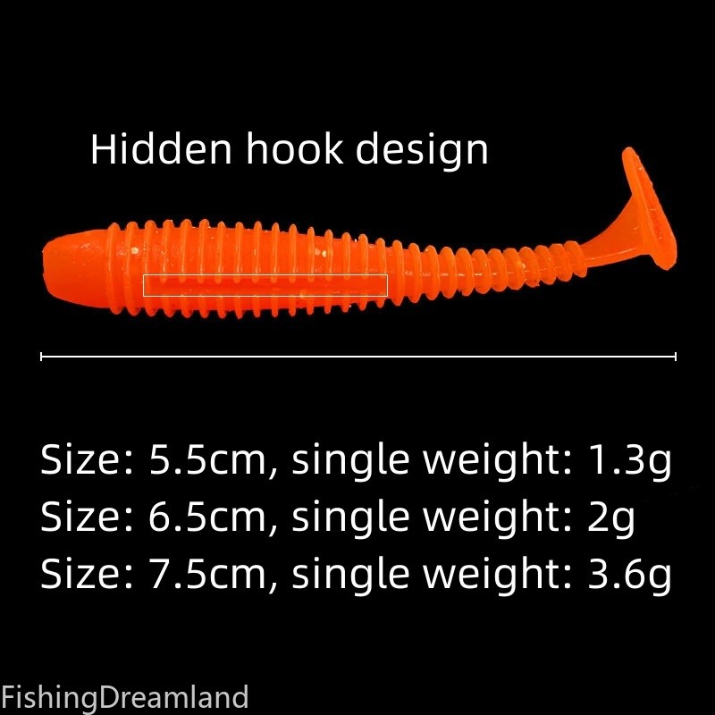 10pcs T-tail Threaded Spiral Soft Bait Soft Fish Soft Worm Lure Fake Bait Fake Bait False Bait