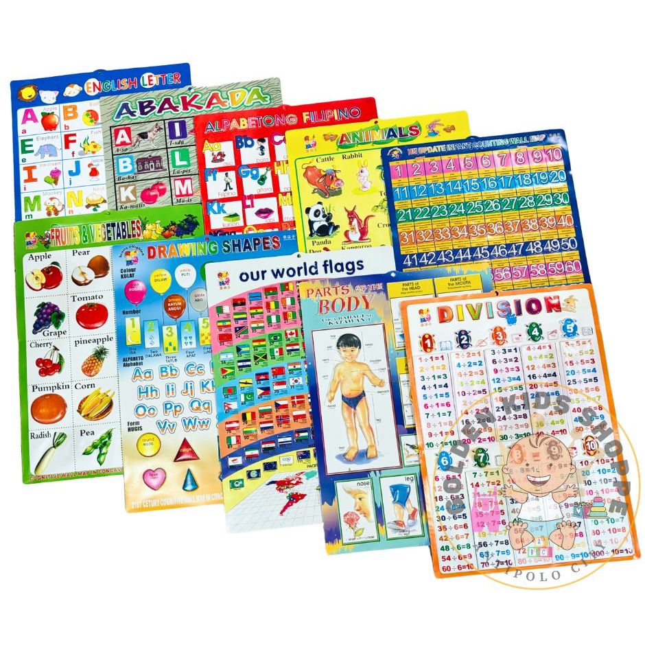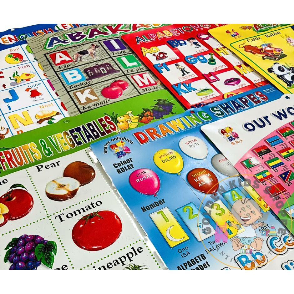 10pcs Wall Chart Assorted Embossed Wall Chart Plastic Chart Kids Chart Starter Chart Learning Chart