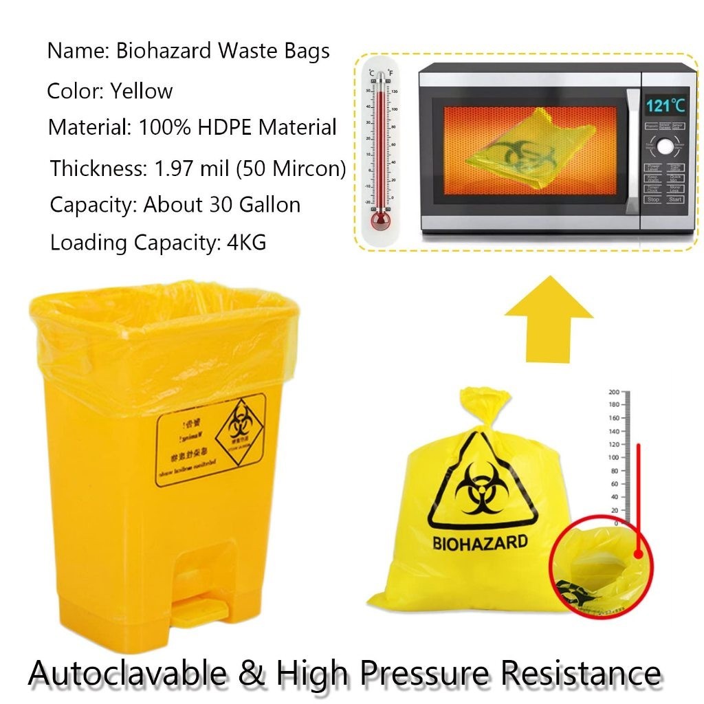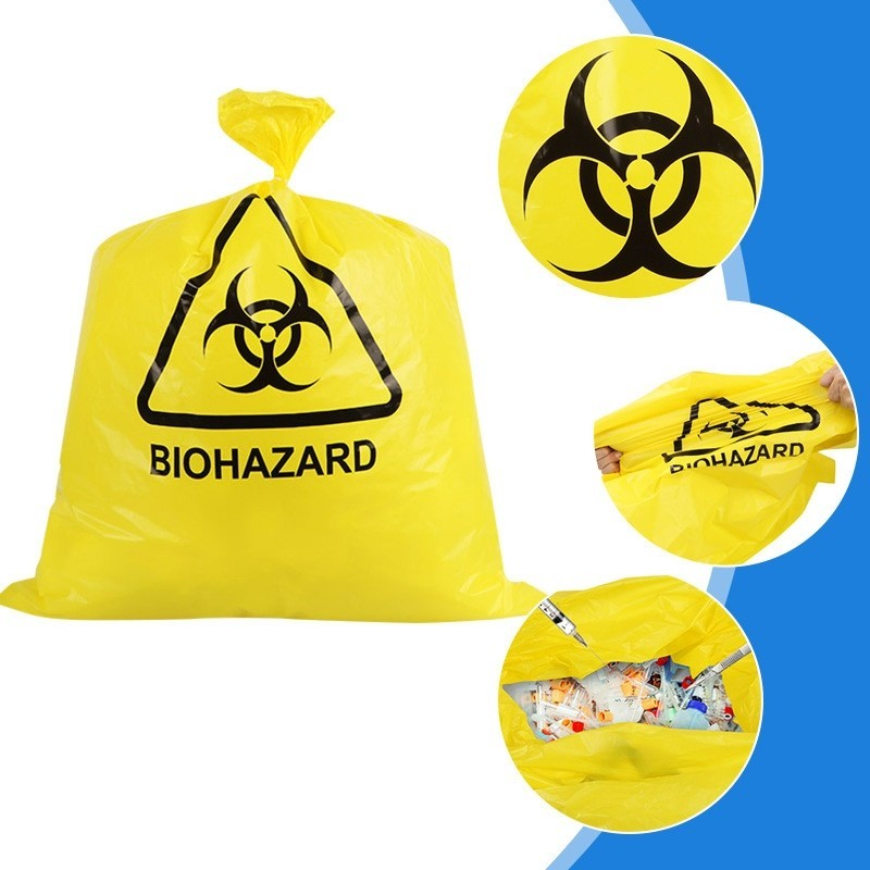 10pcs Yellow BIOHAZARD Medical Waste Bag Thicken HDPE Autoclavable Medical Garbage Bag