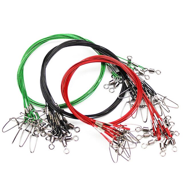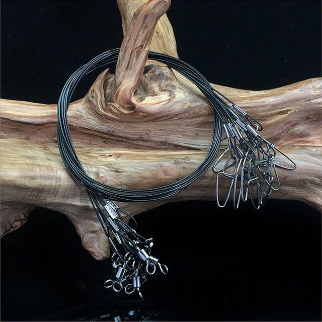 10pcs / lot 50cm strong 150lbs fishing leader wire line anti-bite fly lead strap line diameter 1mm with swivel fishing
