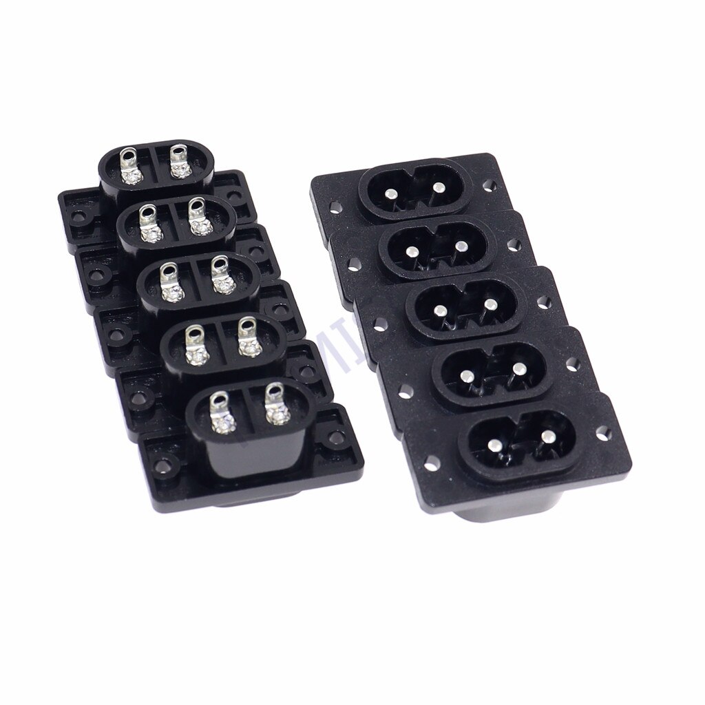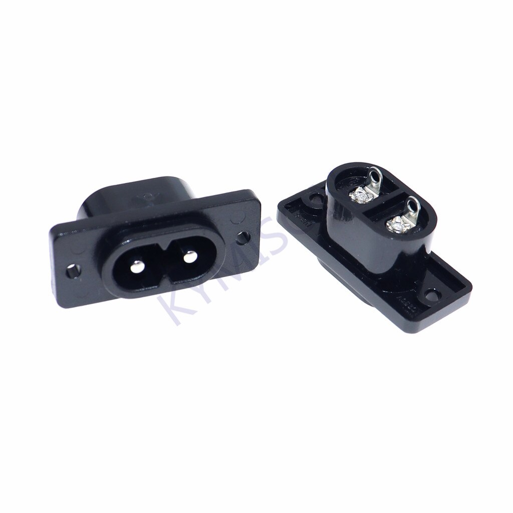 AC Power Socket, IEC 320 C8 Male Firgure 8 Adapter Socket Black Overload Protection Inlet Socket AC-006