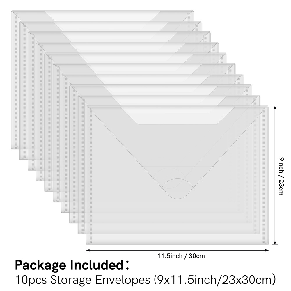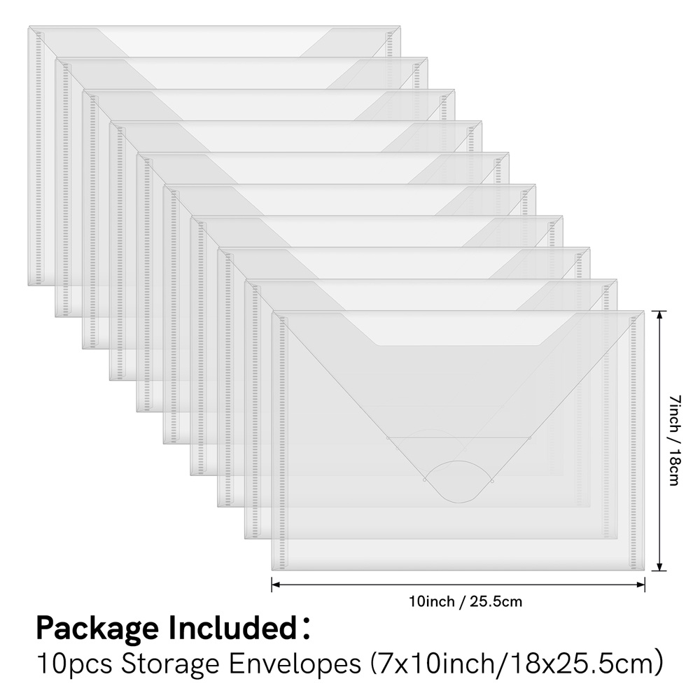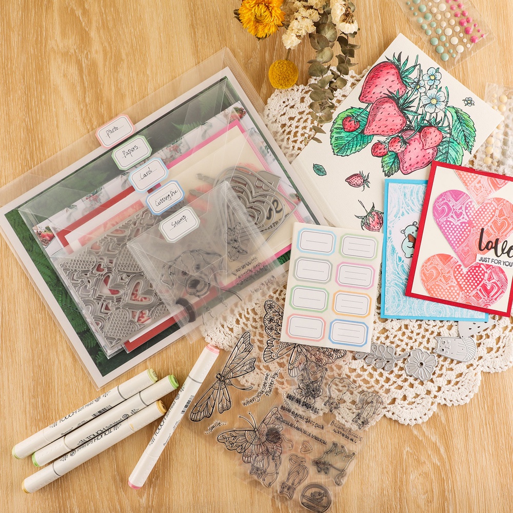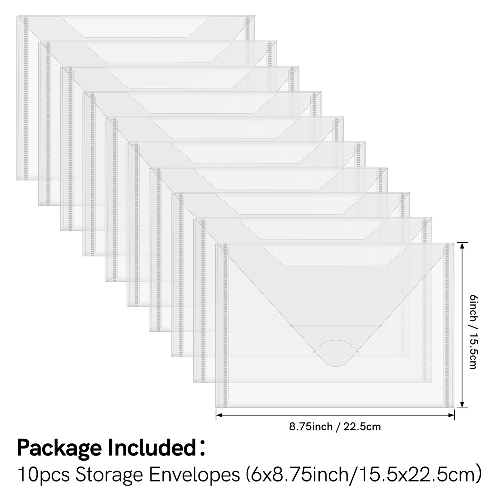 10pcs/set Multiple Size Plastic Storage Envelopes with Colorful Label Stickers Reusable Clear Organizer to Organize Craft Supplies Including A2 Cards ,Cutting dies Clear Stamp etc