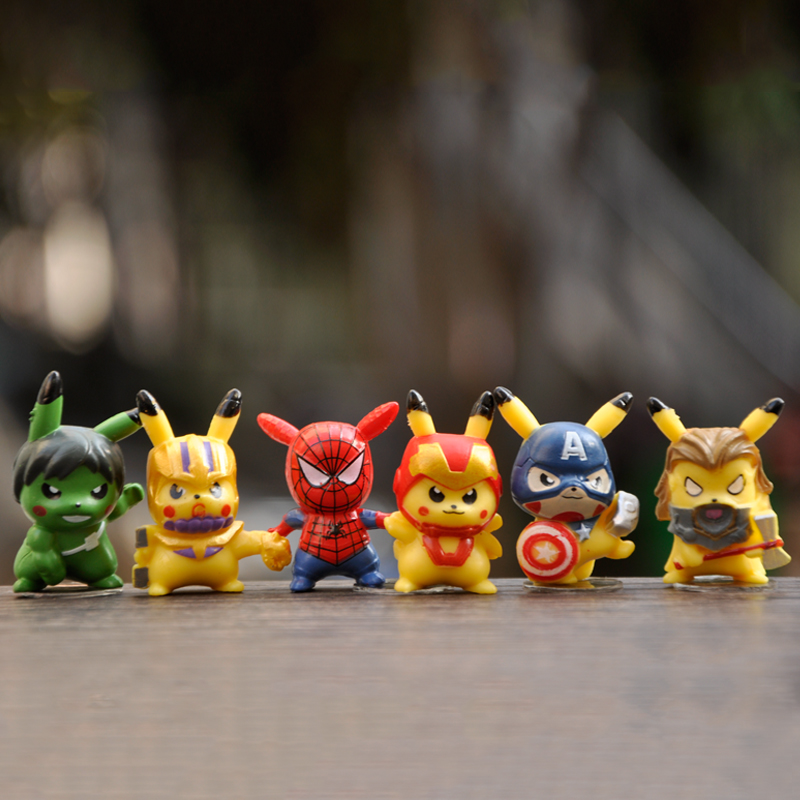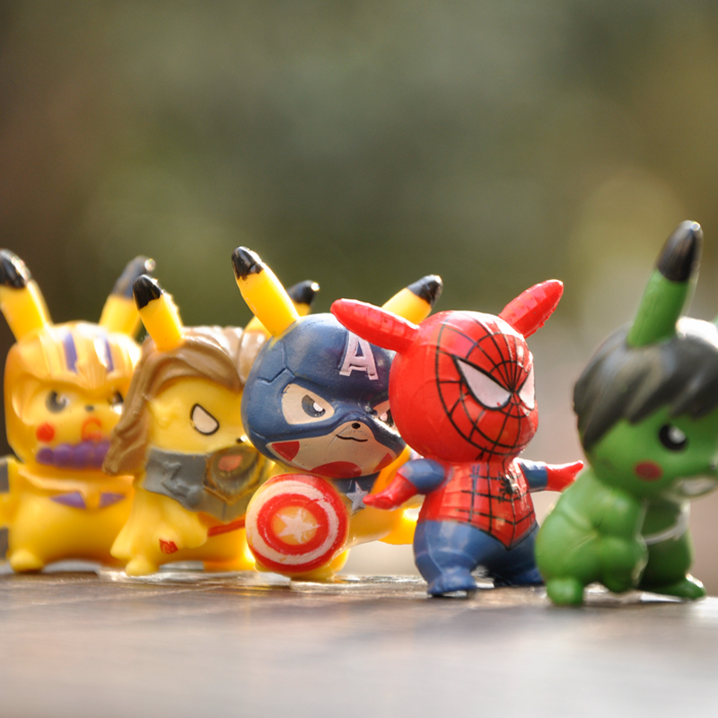 10pcs/set Pokemon Action Figure Toy Set Mini 5CM Pikachu Cosplay Spider-Man Hulk Villain Ninja Anime PVC Figure Toy