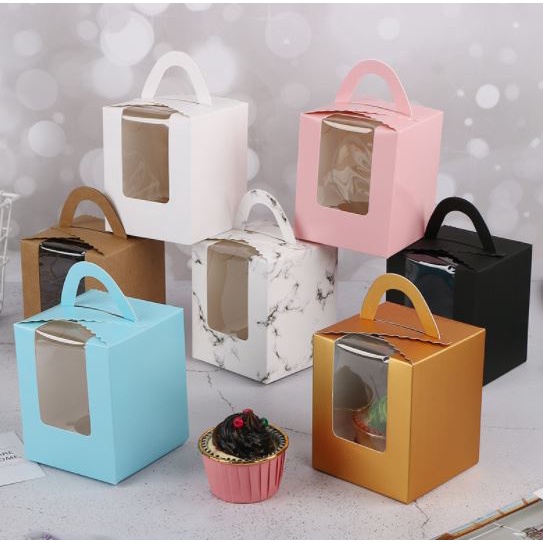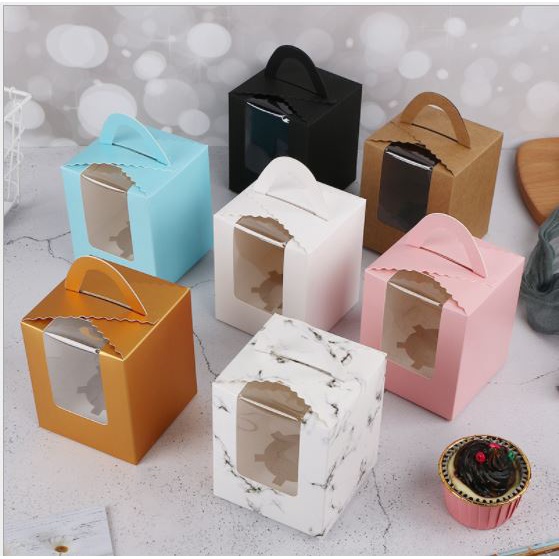 10pcs Single Cupcake Box cake packaging with handle Souvenir Gift Pastry box
