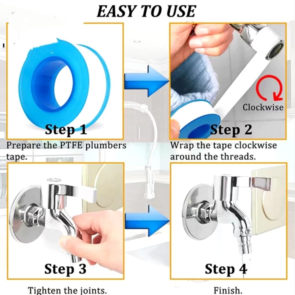 10pcsTeflon Tape(1/2"3/4"1") Pipe Thread Seal Tape for Plumbers Sealant Tape for Leak Water