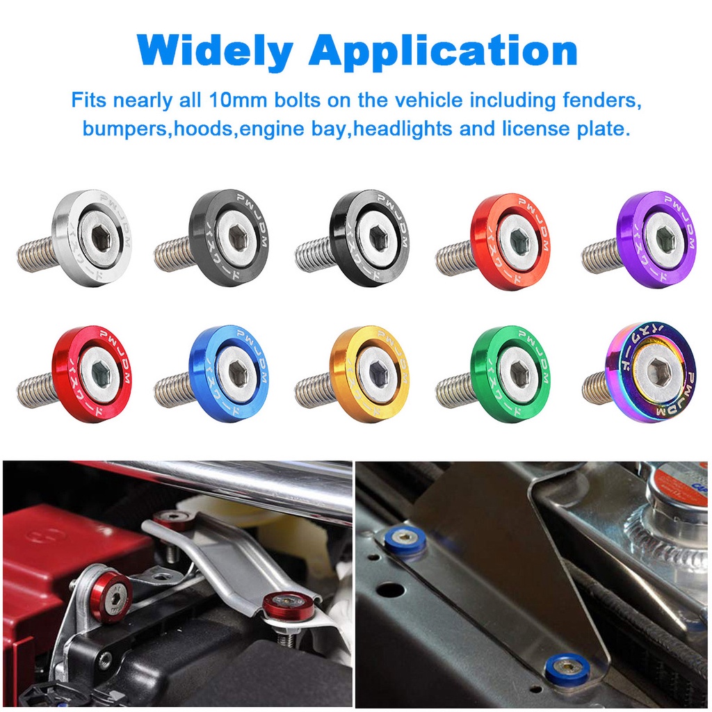 10pieces M6 Car Modified Fasteners Hex Fender Washer Engine Concave Motor Screws Aluminum JDM Fender Washers and Screw