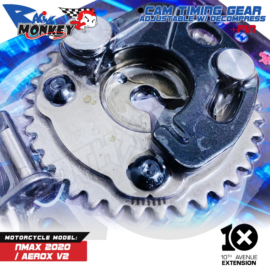 10thX Racing Monkey Cam Timing Gear Adjustable w/ Decompression + Pin for Nmax 2020, Aerox V2 Motor