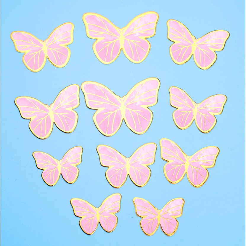 11 Pcs/set Pink Bronzing Butterfly Cake Topper 3D Butterfly Birthday Party Decorations Wedding Cake Decorating Girls and Ladies Birthday Cake Topper