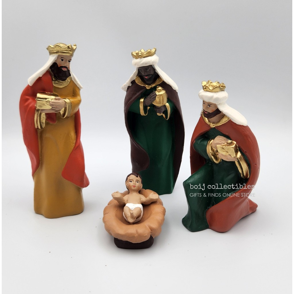 11 Piece Satin Gold Multicolor Edition Handcrafted Nativity Set +Height: 4.75 inches