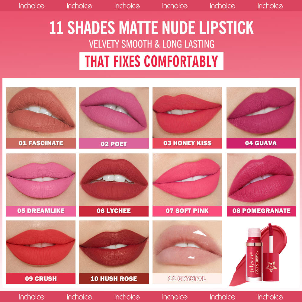 11 SHADES Matte Lipstick 16HR Waterproof Longlasting Cute-size Portable Nude Lip Makeup