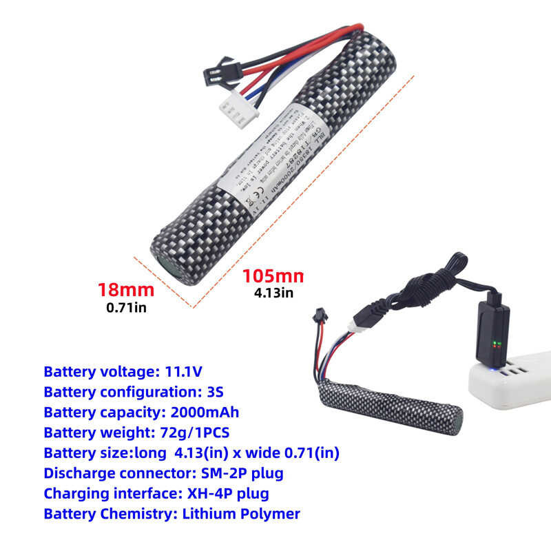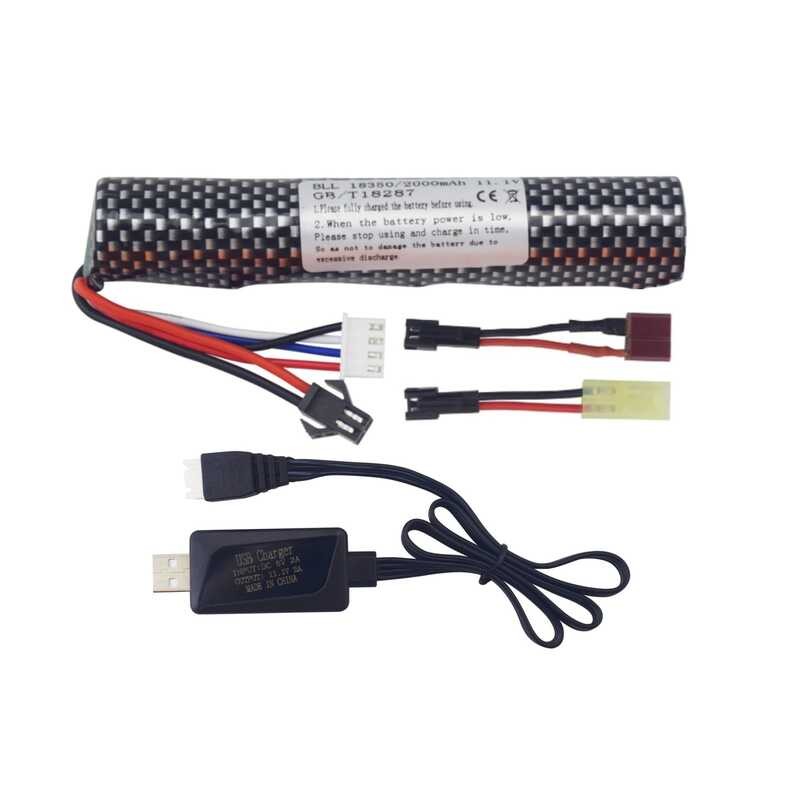 11.1V 2000Mah 3S Li-Ion Battery Sm2p Plug May USB Charger Na Kompatible Sa Airsoft Gel Water Bead B