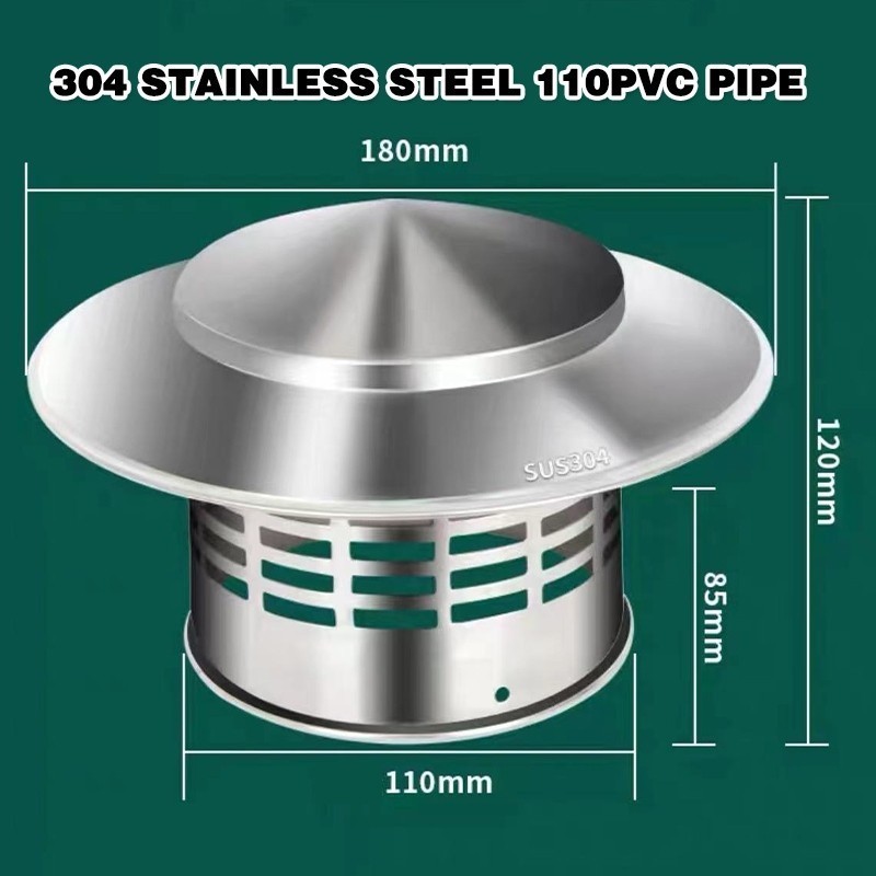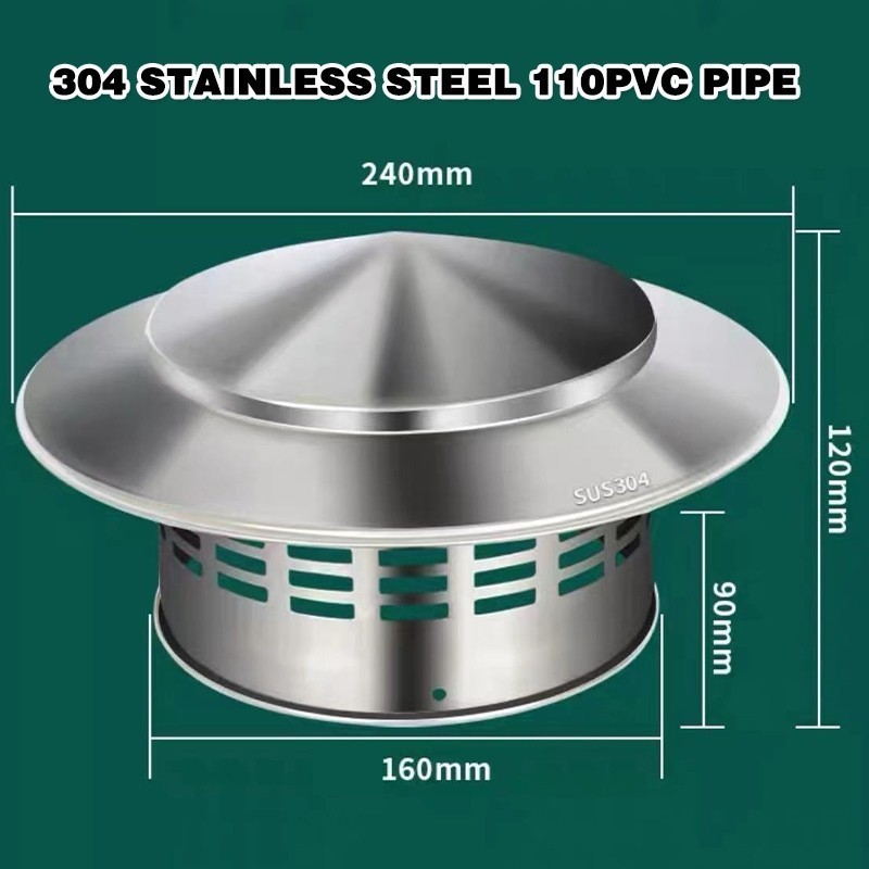 110/160mm 304 Stainless Steel Chimney Cap Roof Ventilate Chimney Cap Outlet Roof Pipe Exhaust
