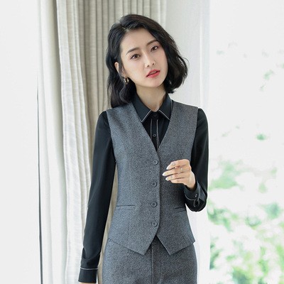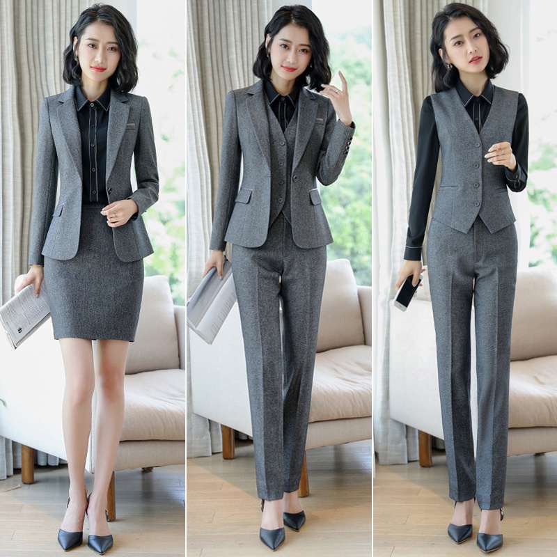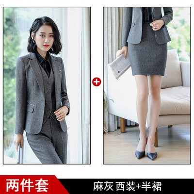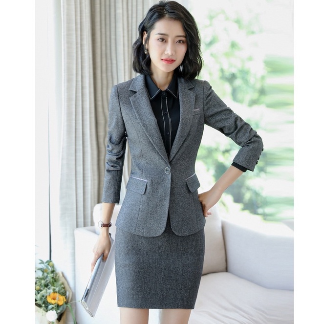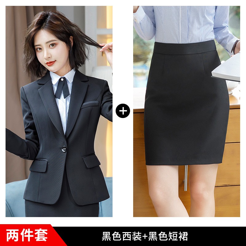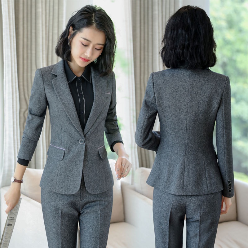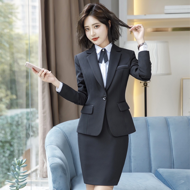 1105 Long Sleeve Temperament Slim Fit Professional Suit Women's Office Formal Suit Work Suit Grey Coat Black Hotel Front Desk Work Suit Two Piece Professional Women's Suit