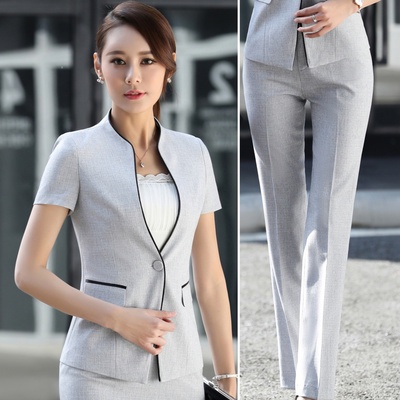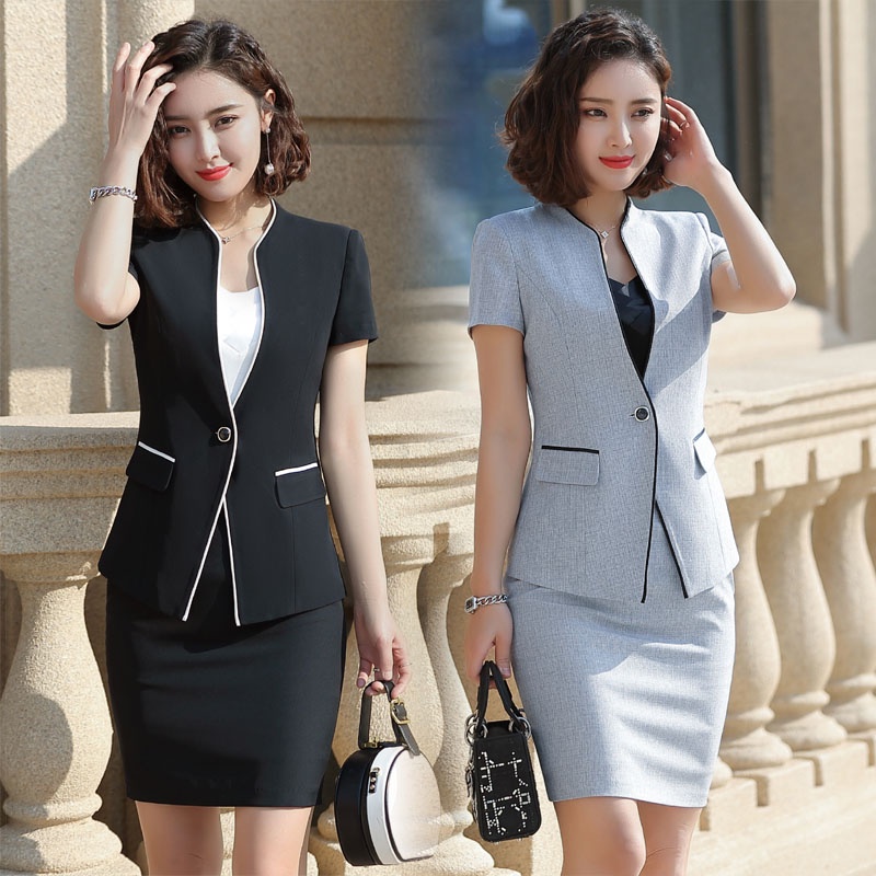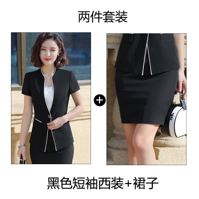 1108 Summer Short-Sleeved Stand-Up Collar Professional Wear Professional Female Skirt Suit Office White Collar Formal Wear Suit Hotel Front Desk Work Uniform Black Black Busi