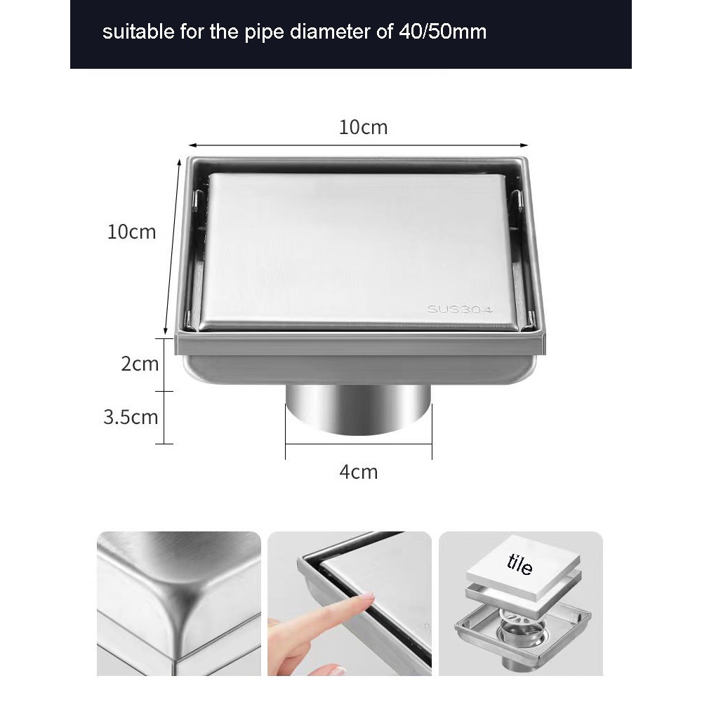 110x110mm Stainless Steel Square Shower Floor Drain,2-in-1 Shower Drain Cover Plate or Tile Inserted