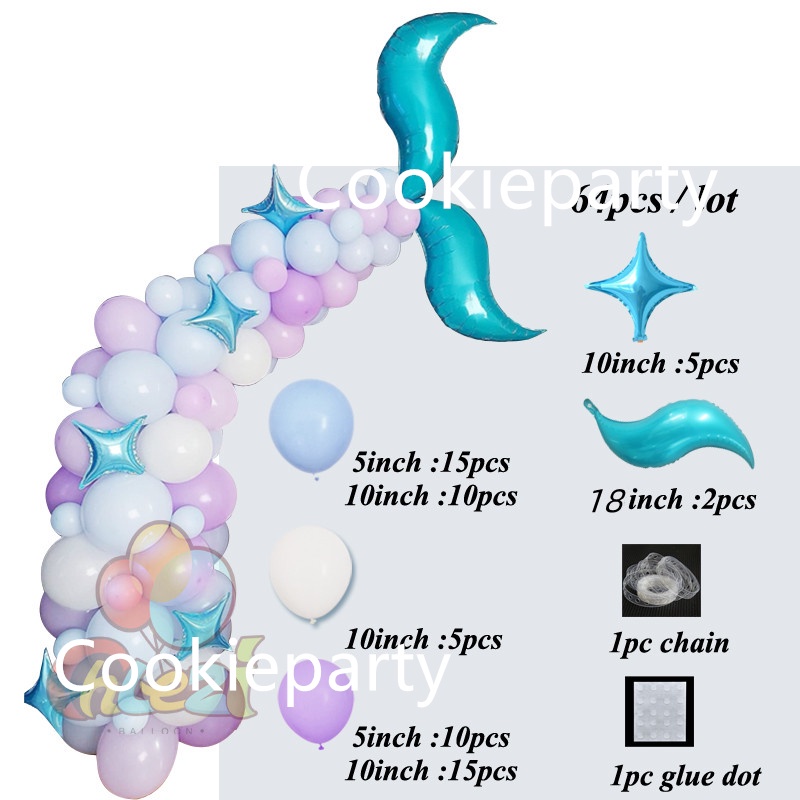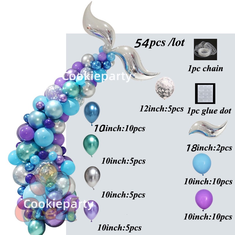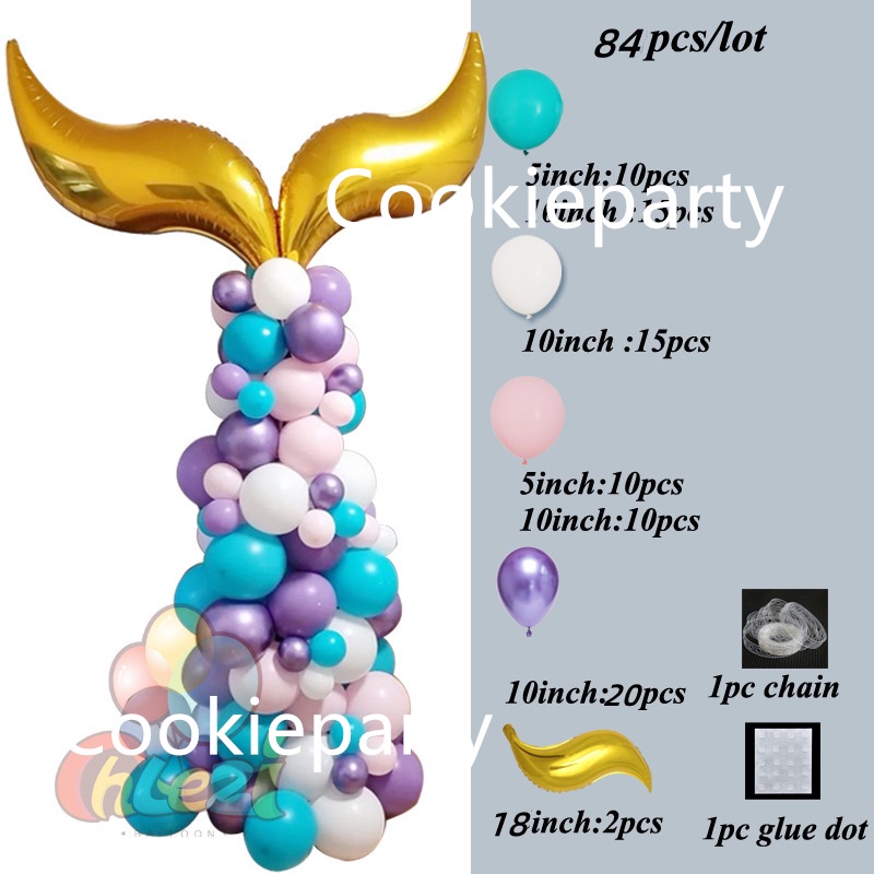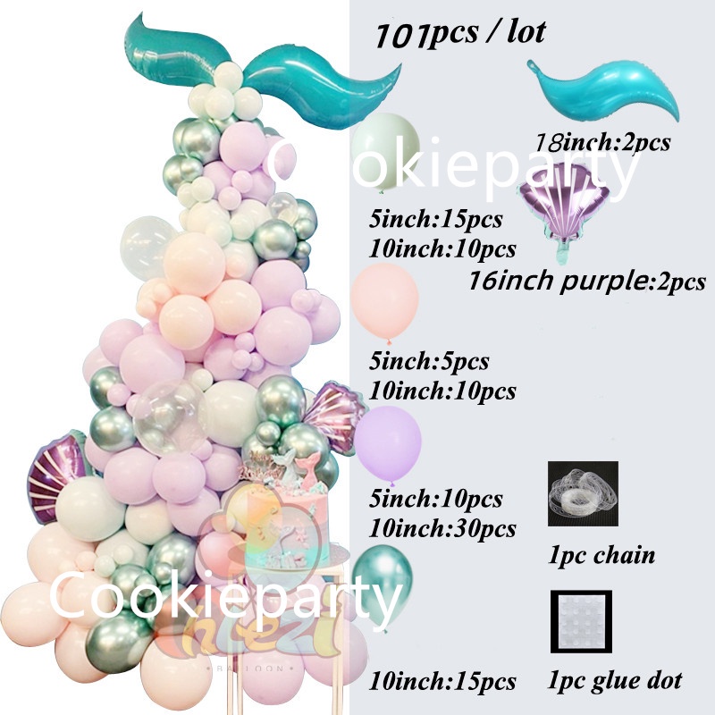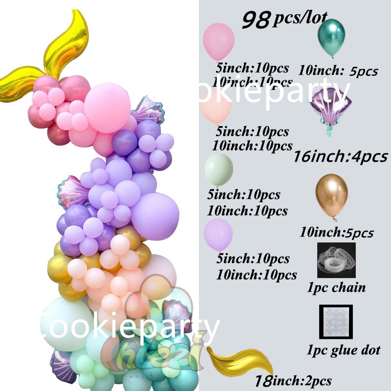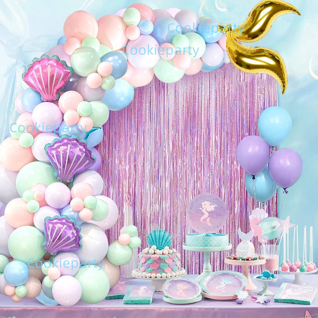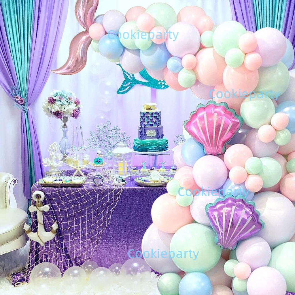 111Pcs Mermaid Tail Balloon Arch Mermaid Theme Birthday Party Decorations Mermaid Tail Shell Balloon Girl Party Supplies
