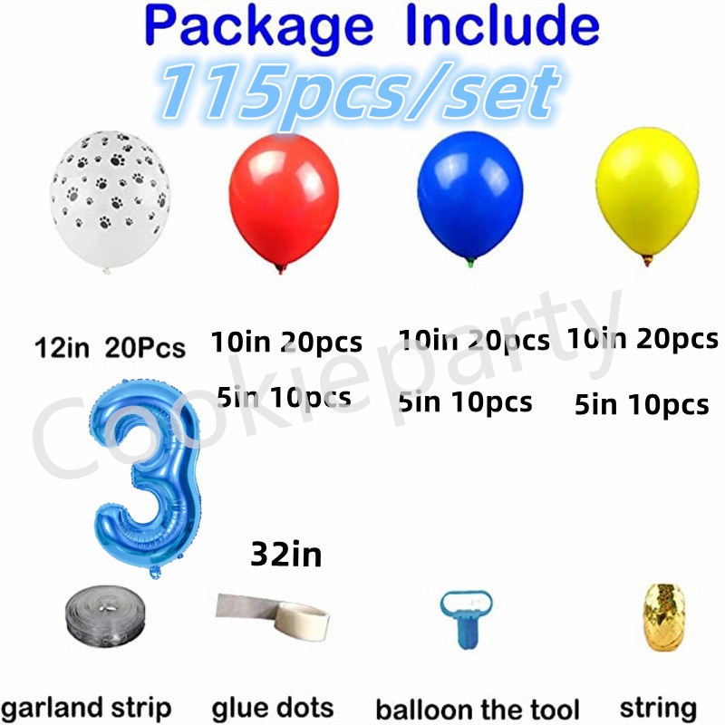115pcs Paw Patrol Theme Balloons Set 32" Gold Blue Number 1-9 Year Old Paw Patrol Balloons Garland Arch Kit Birthday Party Decoration