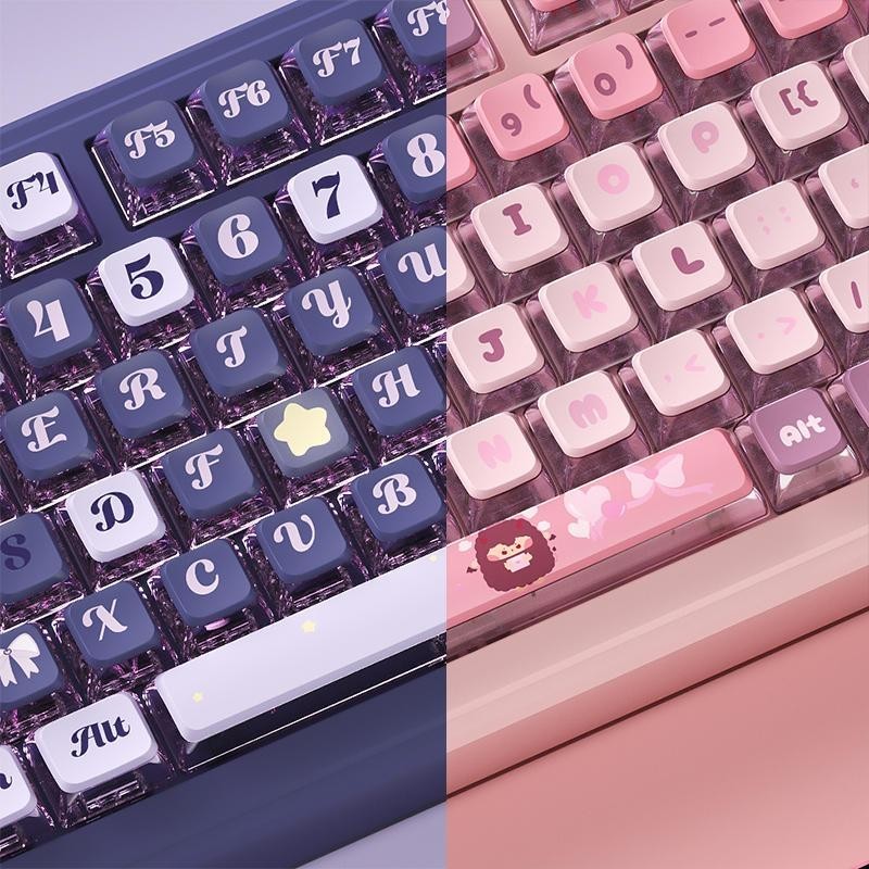 119 Keys Pink Angel Sheep & Purple Witch Theme Pudding Translucent Keycaps Cherry Cute Fashion Mechanical Keyboard Accessories Keycaps PBT Sublimation Keycaps FullSet