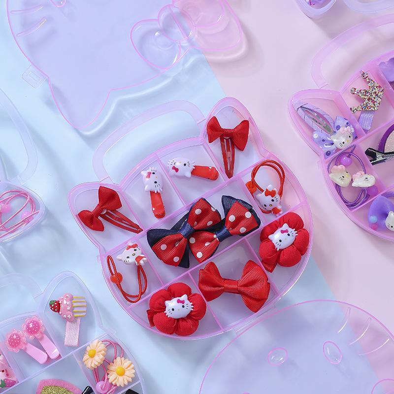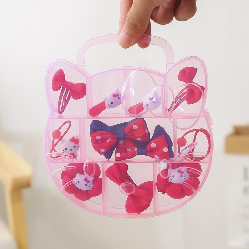 11PCS/Set Hello Kitty Hair Accessories Bow Gift Box Set Girls HairTie Head Rope Rubber Band Hair Set