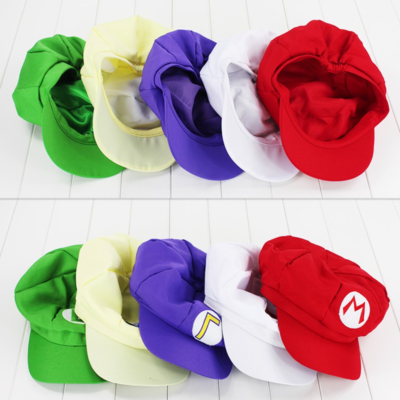 11Style Anime Super Mario Bros. Mario Hat Cap Luigi Bros Letter Printed Cosplay Cartoon Baseball Costume for Adult Hats Waluigi Wario Odyssey Cappy 3D Hat