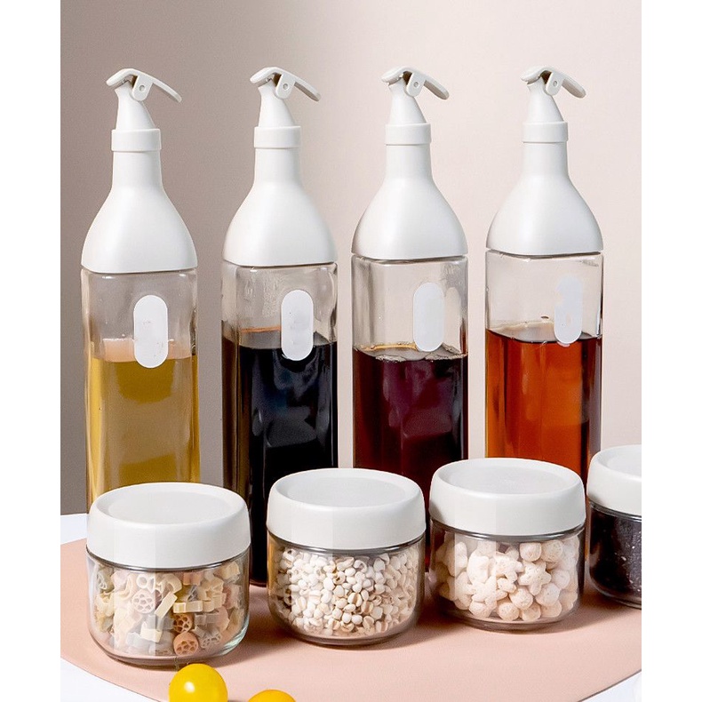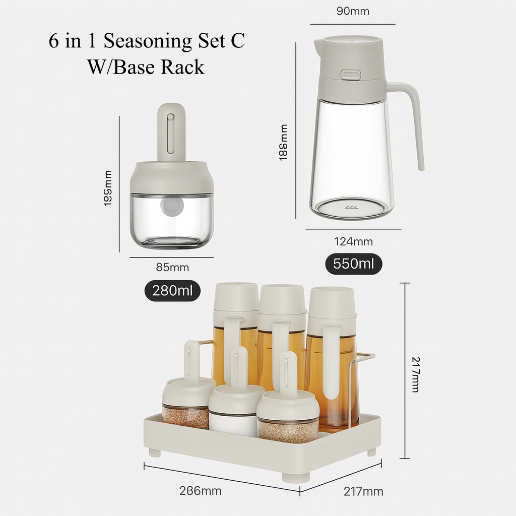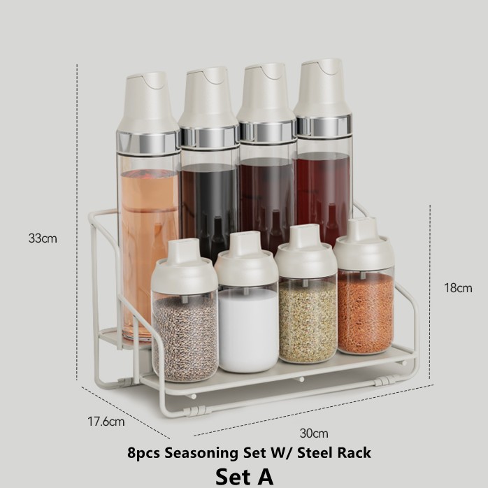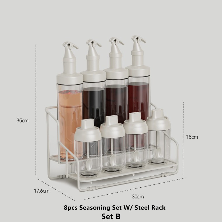 11pcs One Set Seasoning Jar Oil Bottle Condiments Organizer Dispenser Bottle Food Storage Set W/Rack