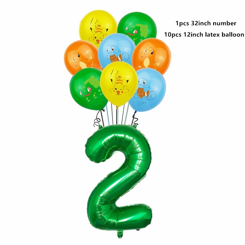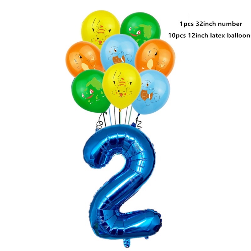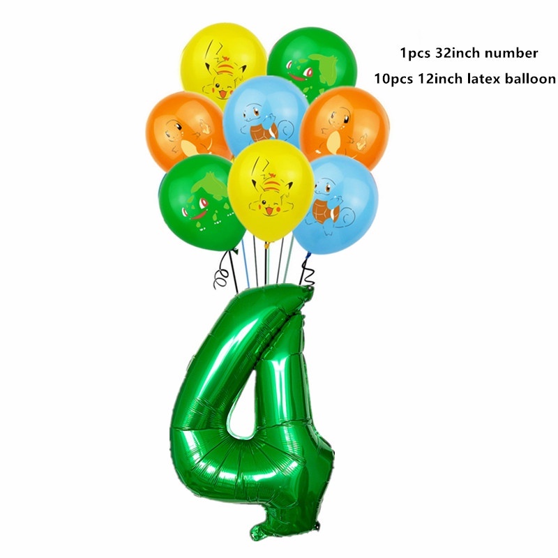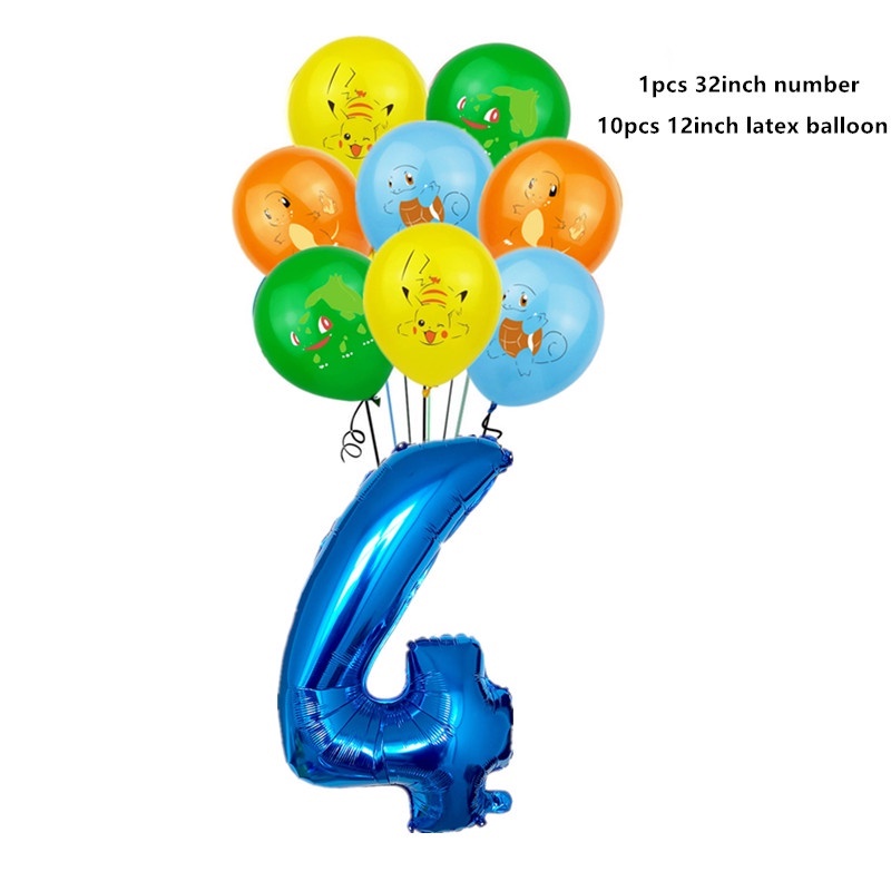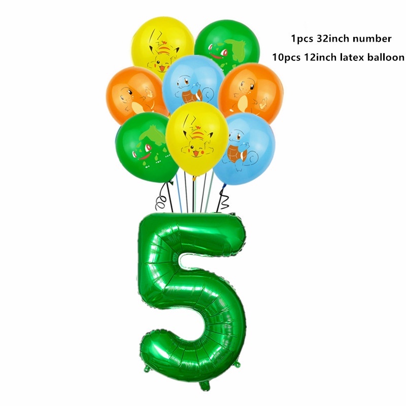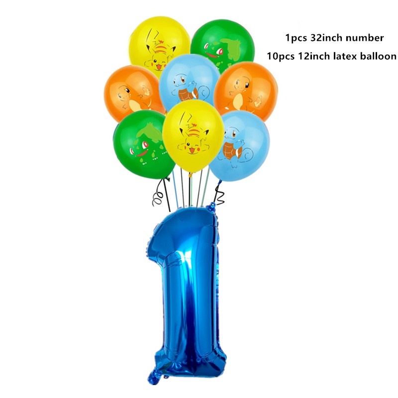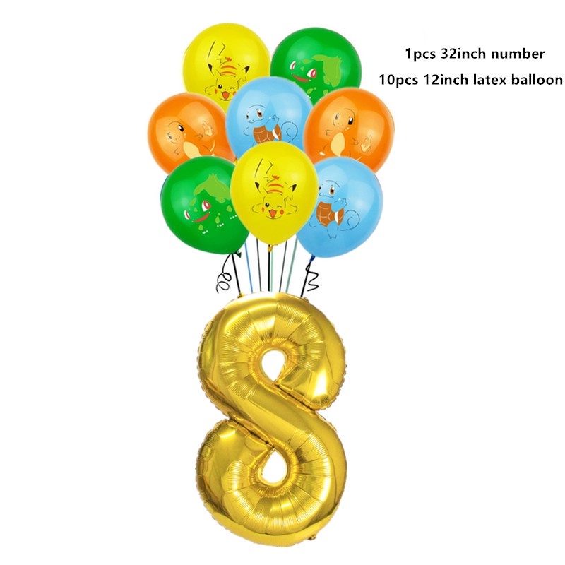11pcs Pikachu Balloon Set Cartoon Pikachu Foil Balloon Elf Pikachu Happy Birthday Banner Cake Insert Baby Shower Children's Birthday Party Decorations