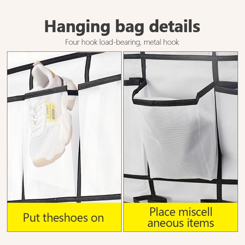 12/24 Pockets Storage Bag Multifunctional Wall Mounted Mesh Storage Box Storage Bags with Hook