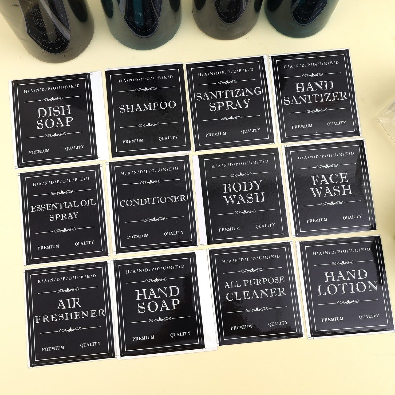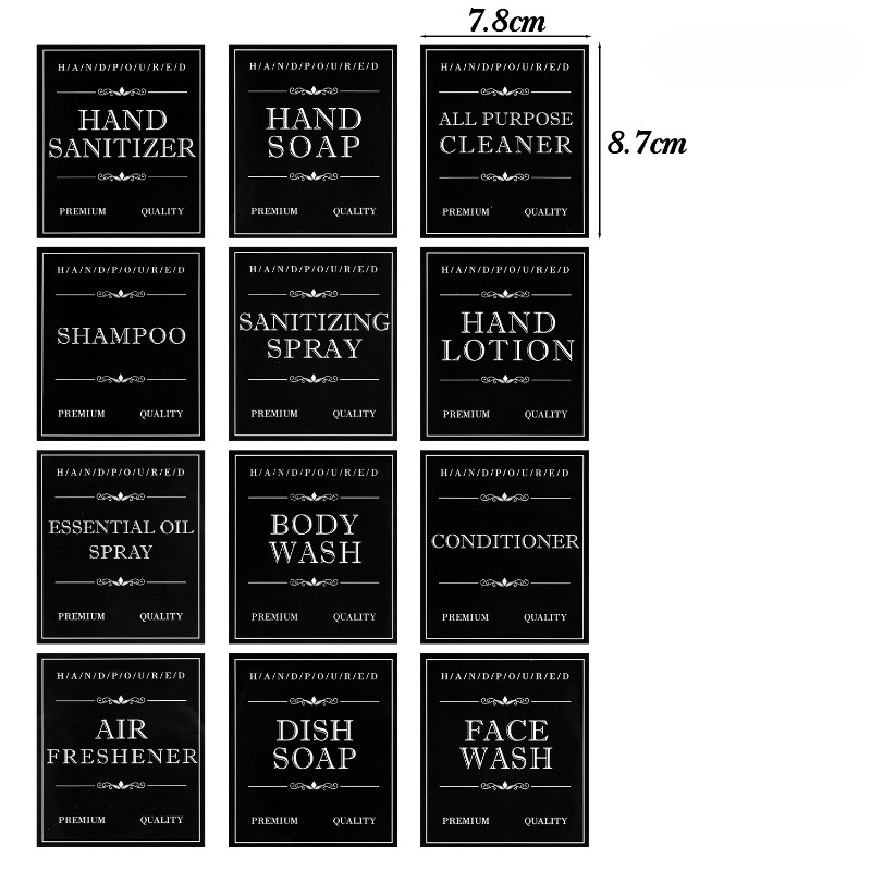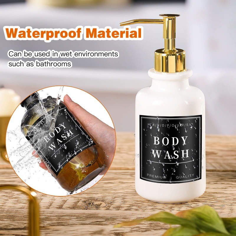 12/24Pcs Soap Dispenser Labels - Lotion Sticker - Shampoo Bottle Sticker - Waterproof, Large Size - Press Type Bottle Sticker - Hand Sanatizer Labels - Bathroom Accessories