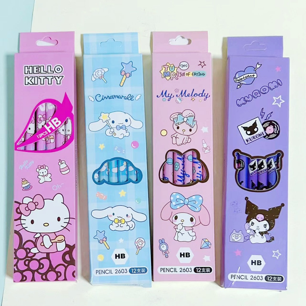 12/36PCS Cartoon Sanrio Pencil Set Kuromi My Melody School Office Supplies Drawing Pencils