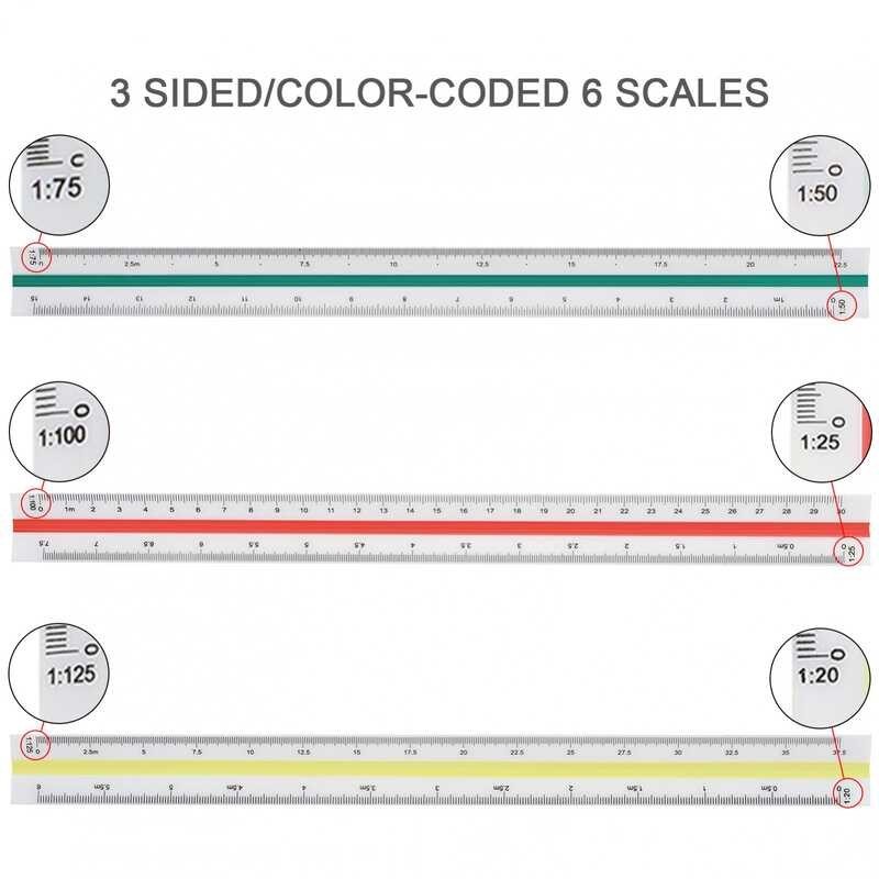 12 Inch ABS Metric Small Scale Triangular Ruler, Multifunctional Drawing Level Ruler Measuring Tool