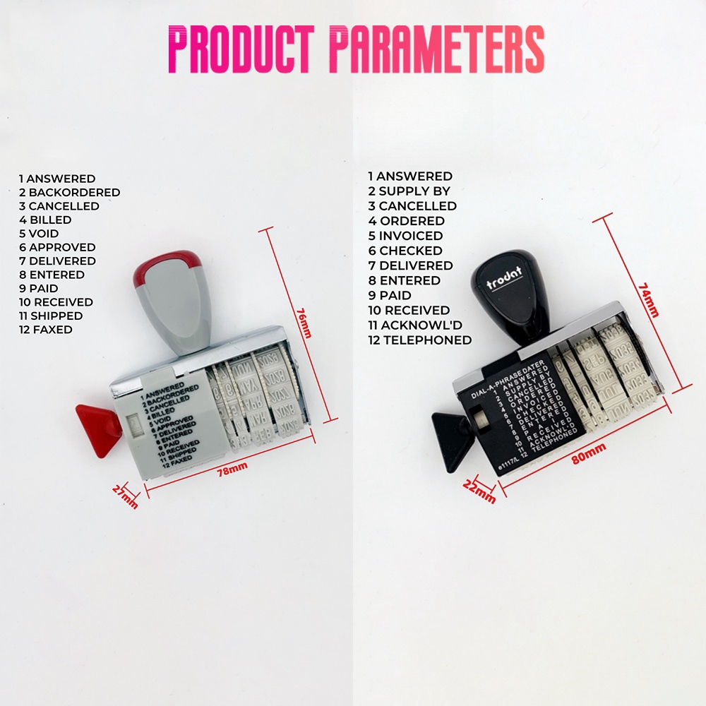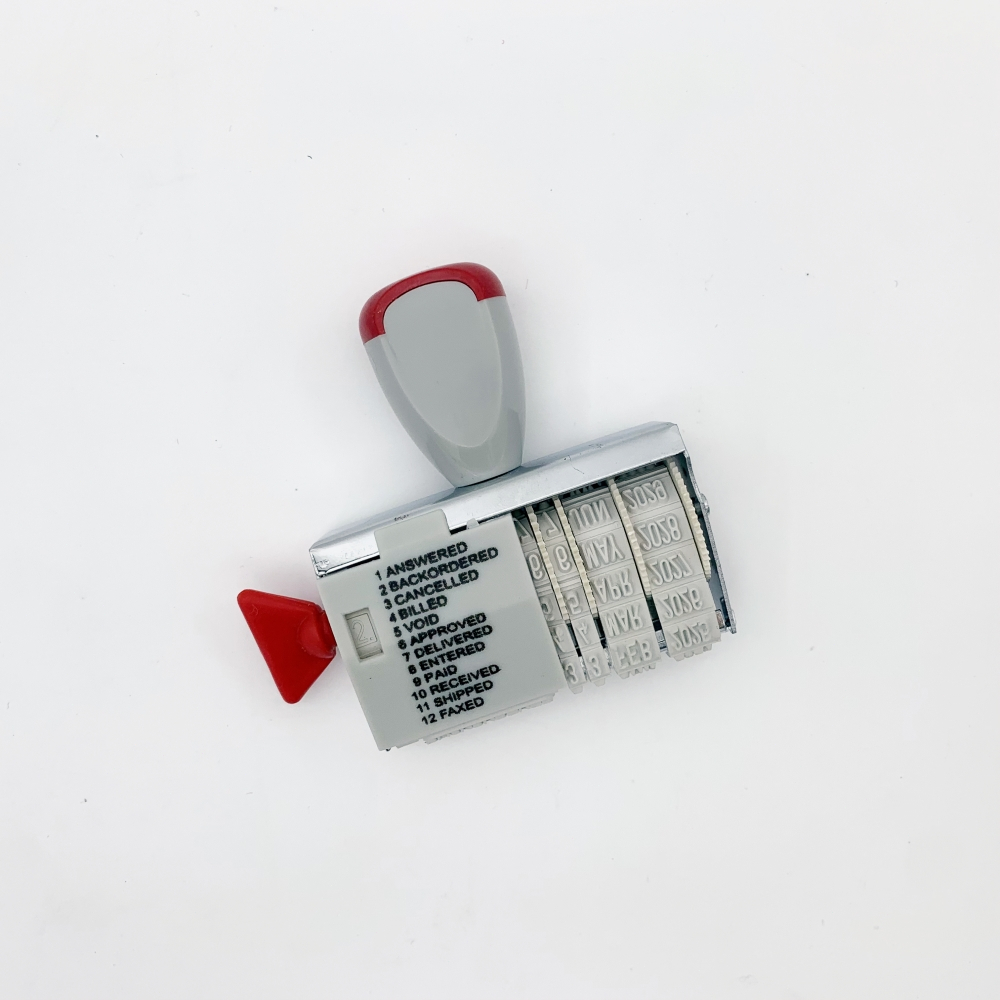 12 Office Text And Date Stamp Day Month Year RECEIVED INVOICED PAID SUPPLY BY CHECKED Roller Stamp