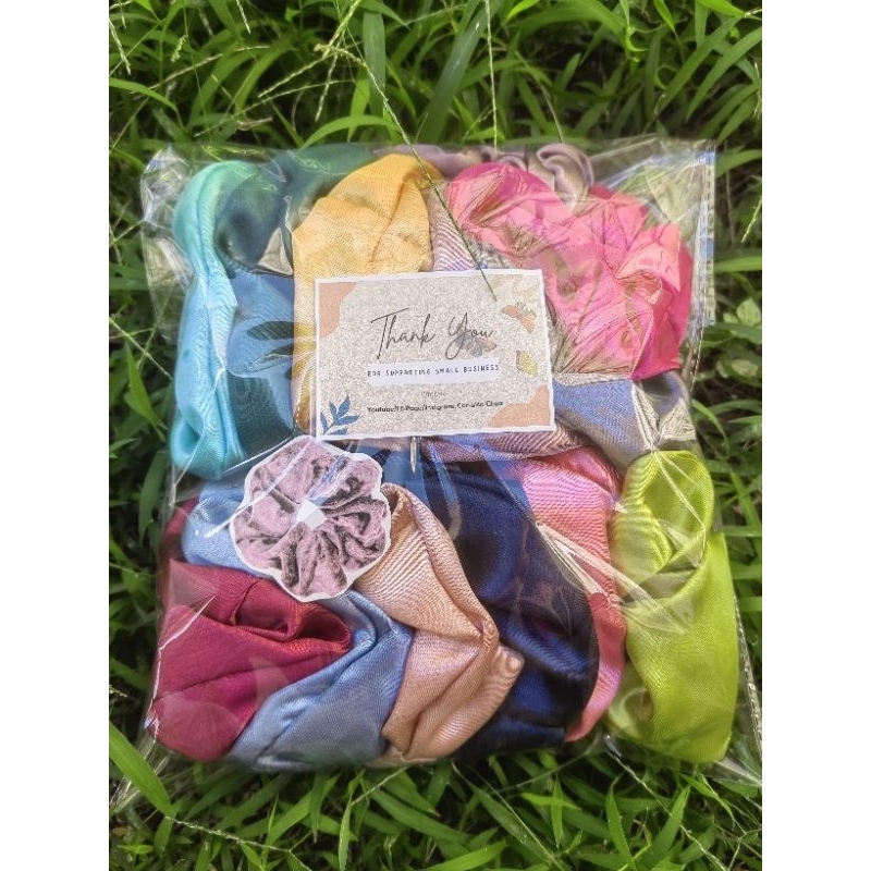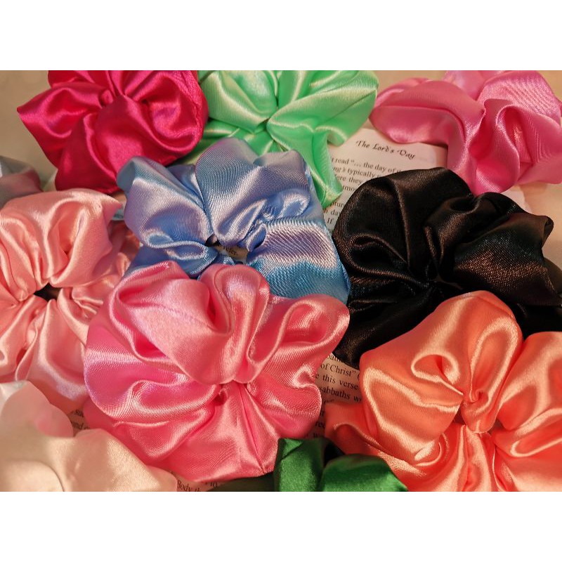 12 PCS SATIN SCRUNCHIES LARGE ASSORTED COLOR hair accessories hair tie ponytail bow korean fashion