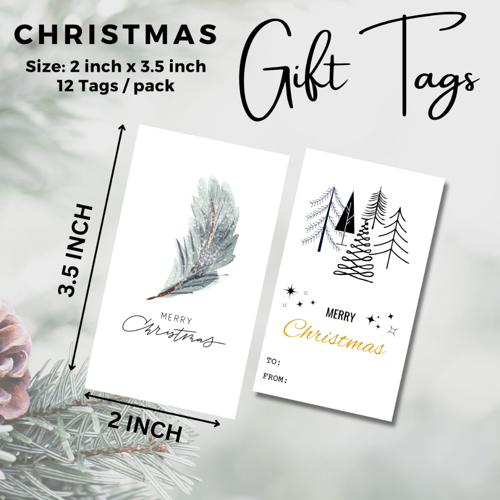 12 Pcs Christmas Tag Gift Tags 2 x 3.5 inches White Lovely Christmas Card [SET B]